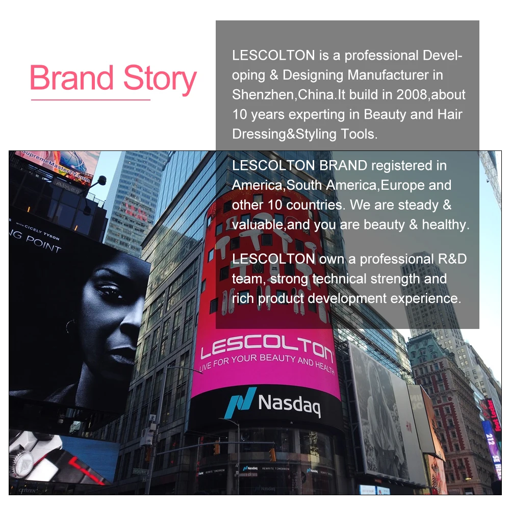 LESCOLTON является профессиональным производителем разработки и дизайна в Шэньчжэне, Китай. Он построен в 2008 году, около 10 лет опыта в области красоты, туалетных принадлежностей и инструментов для укладки.