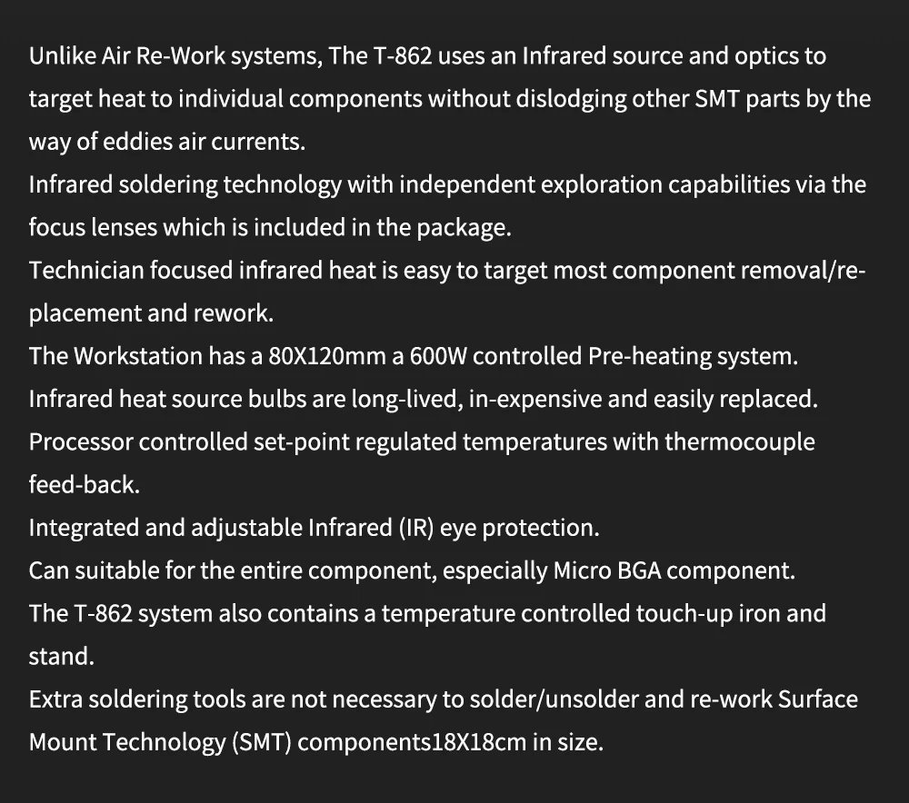 6. Инфракрасное Отопление не имеет потока sirocco. Не влияет на периметр небольшого компонента. Подходит для всех компонентов, особенно микро BGA компонентов.