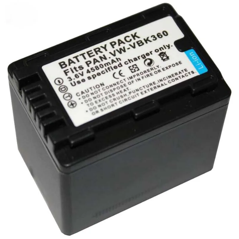 Модель: VW-VBK360Тип батареи: литий-ионныйНапряжение: 3,6 VЕмкость: 4580 мАчСовместимые номера частей аккумулятора и зарядного устройства:Для PanasonicHDC-HS серии HD:HDC-HS80, HDC-HS80KHDC-SD серии HD:HDC-SD40, HDC-SD40K, HDC-SD60, HDC-SD60K, HDC-SD60S, HDC-SD80, HDC-SD80K, HDC-SD80R, HDC-SD80S, HDC-SD90K, HDC-SDX1, HDC-SDX1HHDC-TM серии HD:HDC-TM40, HDC-TM40K, HDC-TM41H, HDC-TM55, HDC-TM55K, HDC-TM60, HDC-TM60K, HDC-TM80K, HDC-TM80S, HDC-TM80R, HDC-TM90K, HDC-TM90, HDC-TMX1SDR-H серии:SDR-H100, SDR-H100K, SDR-H100R, SDR-H100S, SDR-H101, SDR-H101K, SDR-H101R, SDR-H85, SDR-H85A, SDR-H85K, SDR-H95, SDR-H85S, SDR-HS60, SDR-H95K, SDR-HS60K, SDR-HS80, SDR-HS80KSDR-S серии:SDR-S45, SDR-S50, SDR-S50A, SDR-S50K, SDR-S50N, SDR-S70, SDR-S70K, SDR-S70R, SDR-S70SSDR-T серии:SDR-T50, SDR-T50K, SDR-T55, SDR-T55K, SDR-T70, SDR-T70K, SDR-T71, SDR-T71K, SDR-T76K, SDR-T76HC-V серии:HC-V10,HC-V10EB,HC-V10EB-R,HC-V10EB-K, HC-V100, HC-V100M, HC-V100EB, HC-V100EB-K, HC-V500, HC-V500M, HC-V500MEB-K, HC-V500EB, HC-V700M, HC-V700, HC-V700EB, HC-V700EB-KСоветы по времени доставки: