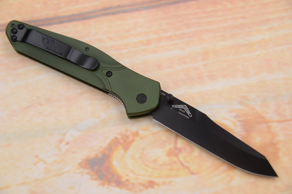 Overall Length:7.87"(200mm)Blade Length:3.40"(86mm)Blade Thickness:0.12"Blade Material: 9cr13 Mark S30VHardness:58-59HRCBlade Grind:FlatFinish:Satin/Black titanium platingEdge Type:PlainKnife Weight:82gHandle Length:4.47"Handle Thickness:0.41"Handle Material:AluminumLiner:Stainless SteelUser:Right Hand, Left HandPocket Clip:Tip-UpKnife Type:ManualOpener:Thumb StudModel:940Best Use:Camp/Hike, Everyday CarryColor:Green/BlackProduct Type:Knife