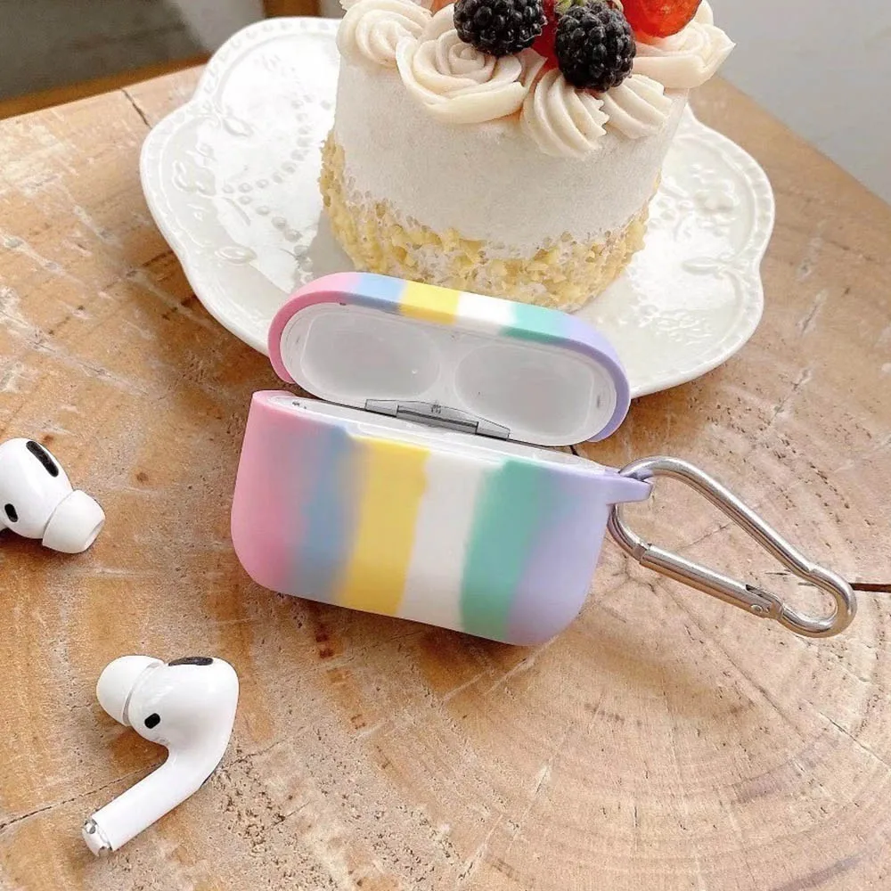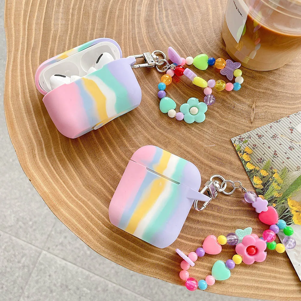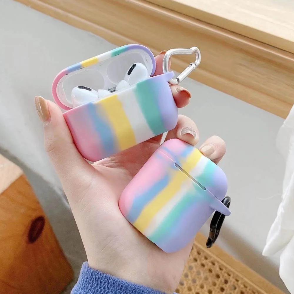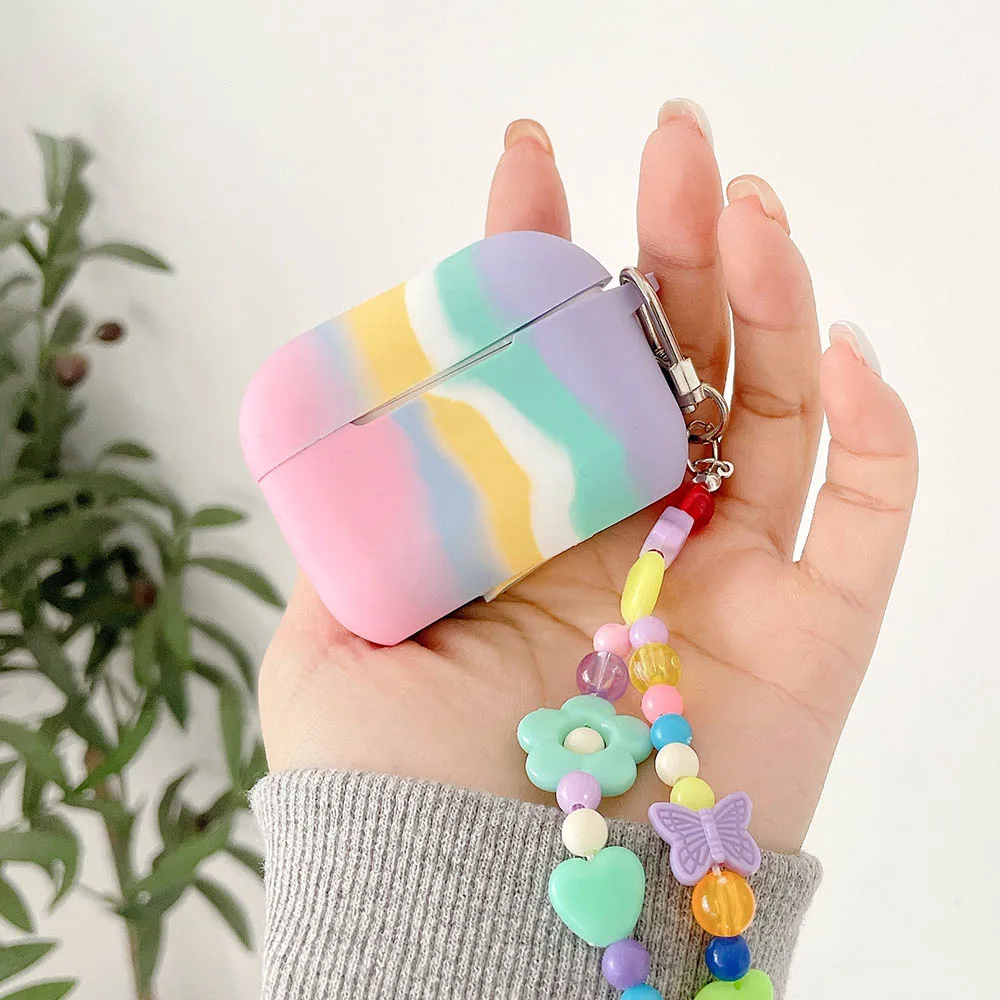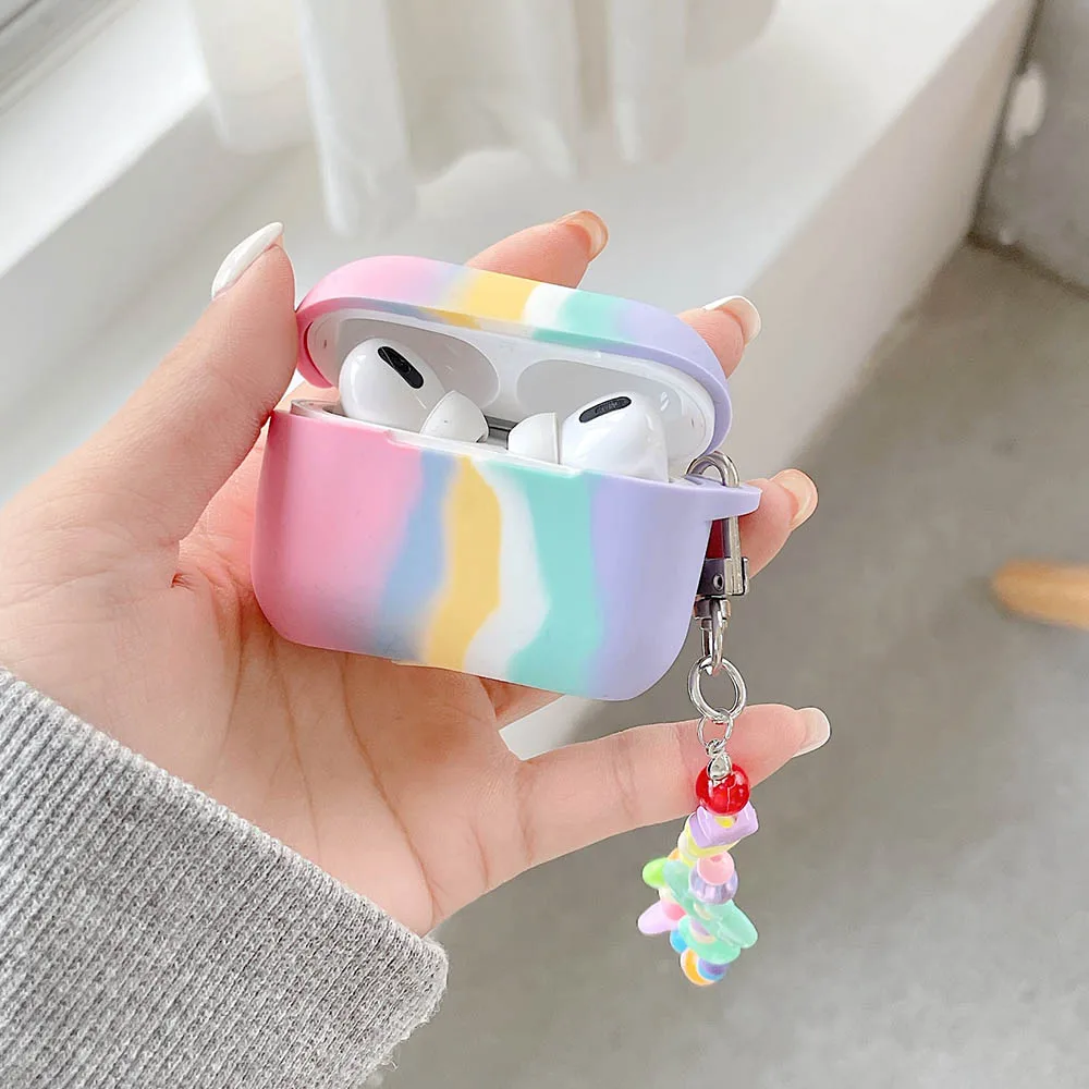 Мягкий силиконовый чехол s для Apple Airpods 1/2, защитный чехол, Bluetooth, беспроводной чехол для наушников, зарядка, коробка, сумки, Радужный брелок