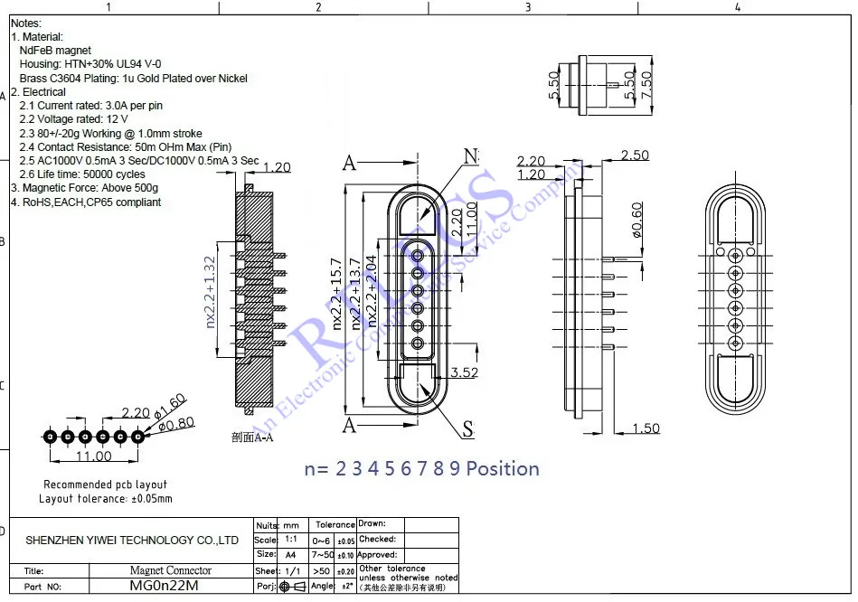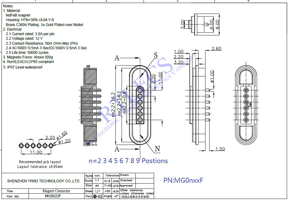 Магнитный СОЕДИНИТЕЛЬ 6 полюсный кабель провода Мужской Женский 2,2 мм сетка THT 3A пружинный Pogo Pin водонепроницаемый коврик