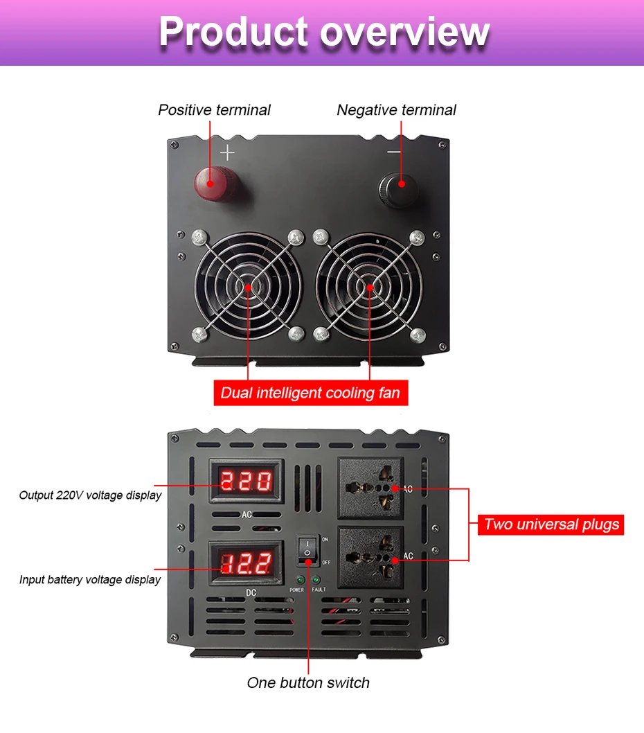 Входное напряжение инвертора 12 В и инвертора 24 В не может быть универсальным. Если выбрано неправильное входное напряжение, инвертор не будет работать. Если вы ничего не понимаете, пожалуйста, свяжитесь со службой поддержки клиентов, мы ответим вам, как только увидим информацию. Спасибо!