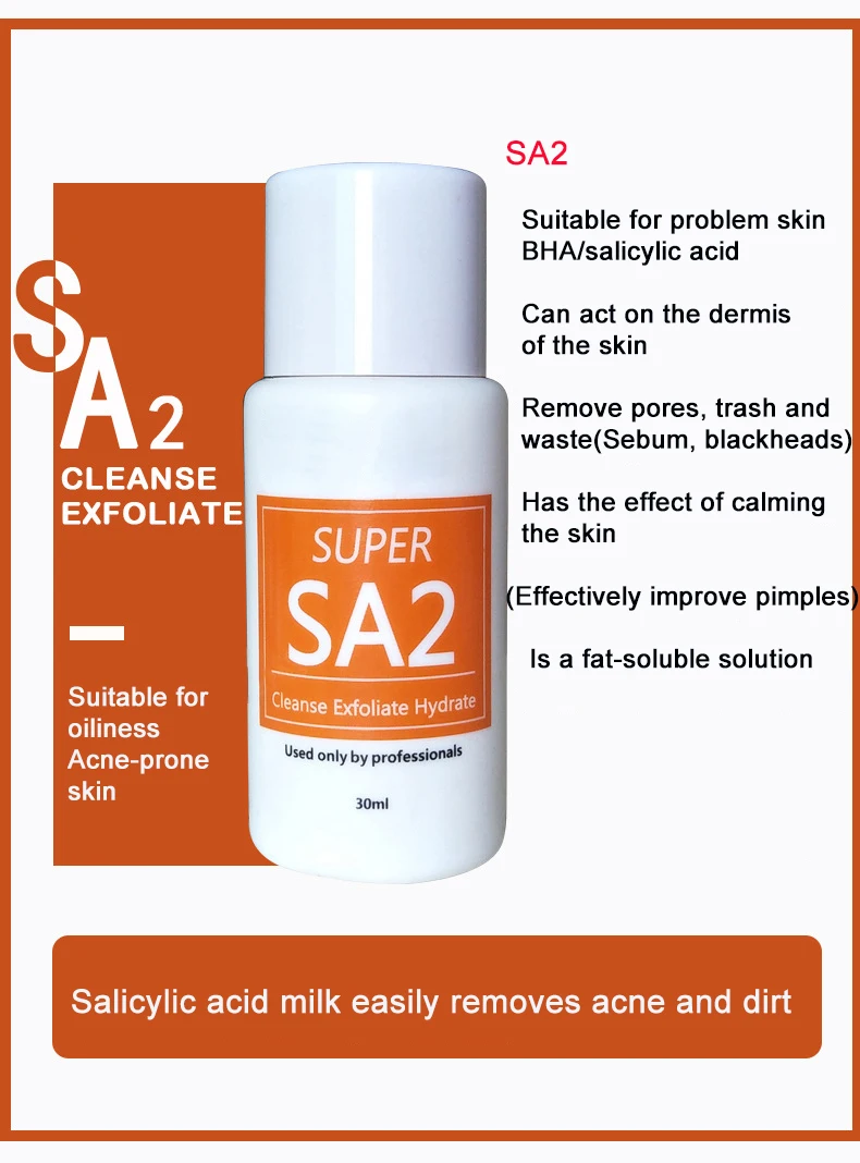 SA2: чувствительность, акне, жирорастворимые и слабые кислоты могут легко удалить акне бактерии и старение веществ, естественный увлажняющий фактор может успокоить кожу.