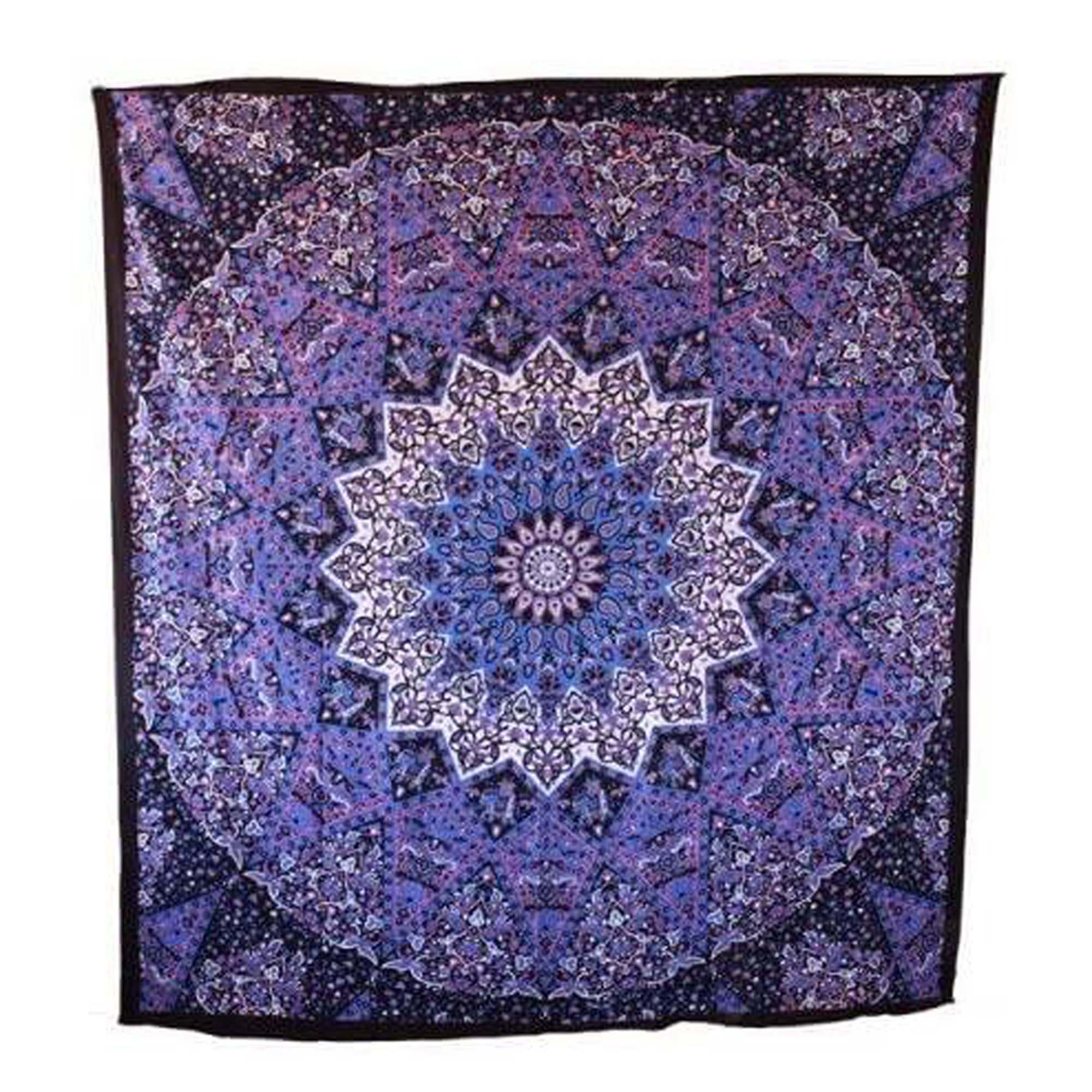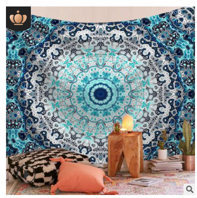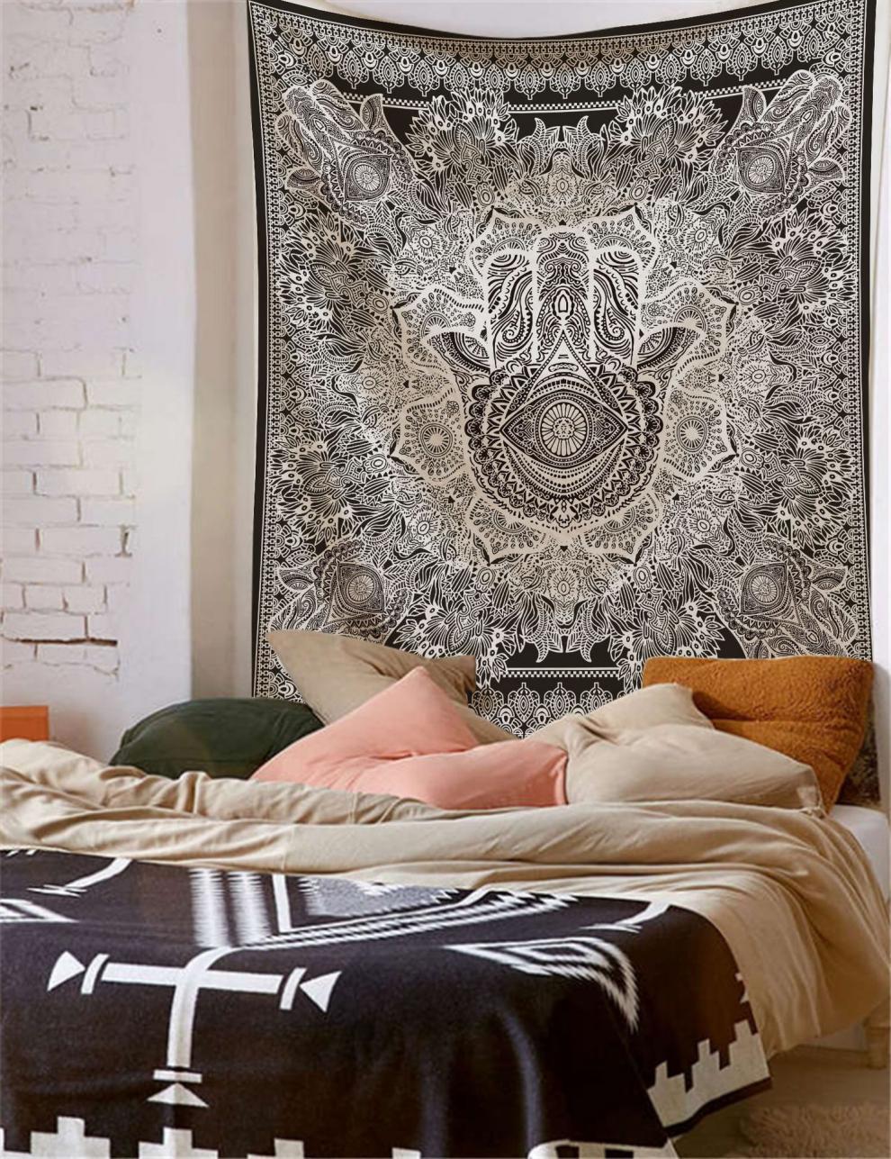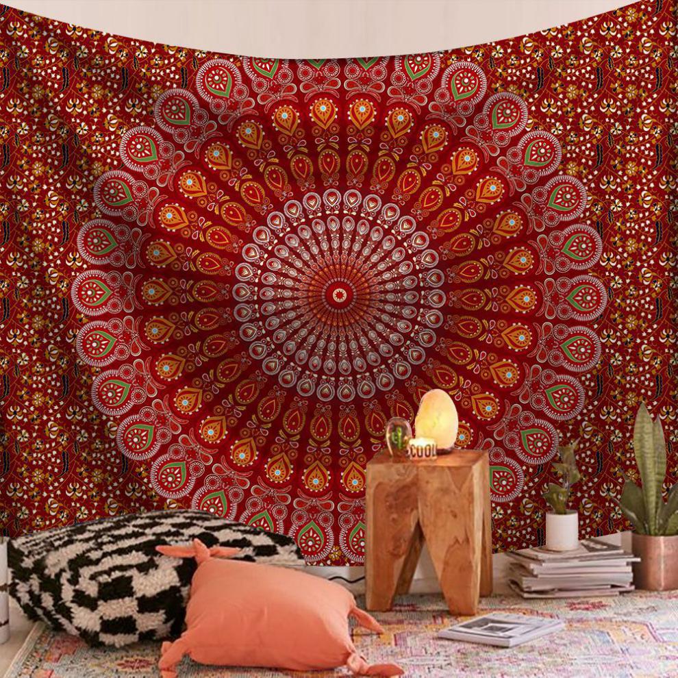 Цветовое сочетание гобелена с мандалой делает всю комнату мирной и спокойной.