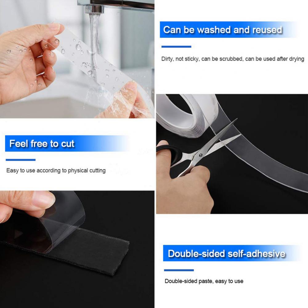 1/2/3 метр мульти-функциональная Двухсторонняя клейкая лента, Не оставляющий следов надежный дизайн, многоразовые моющиеся прозрачного ленты гель стикер на ручку