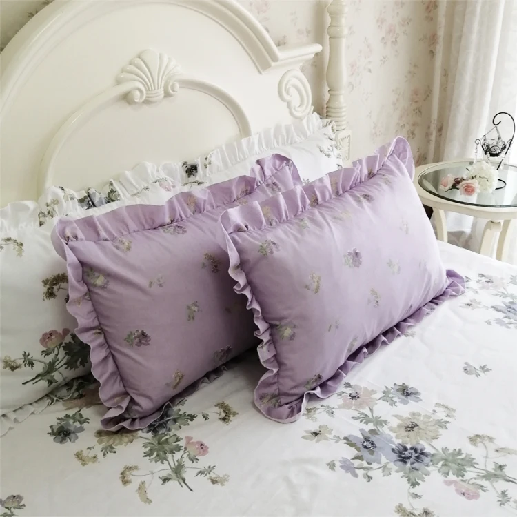 Подушка с оборками наволочки с цветочным принтом, комплект из 2 винтажных наволочек из 100% хлопка для девочек, фермерский дом, французская принцесса, корейский стиль