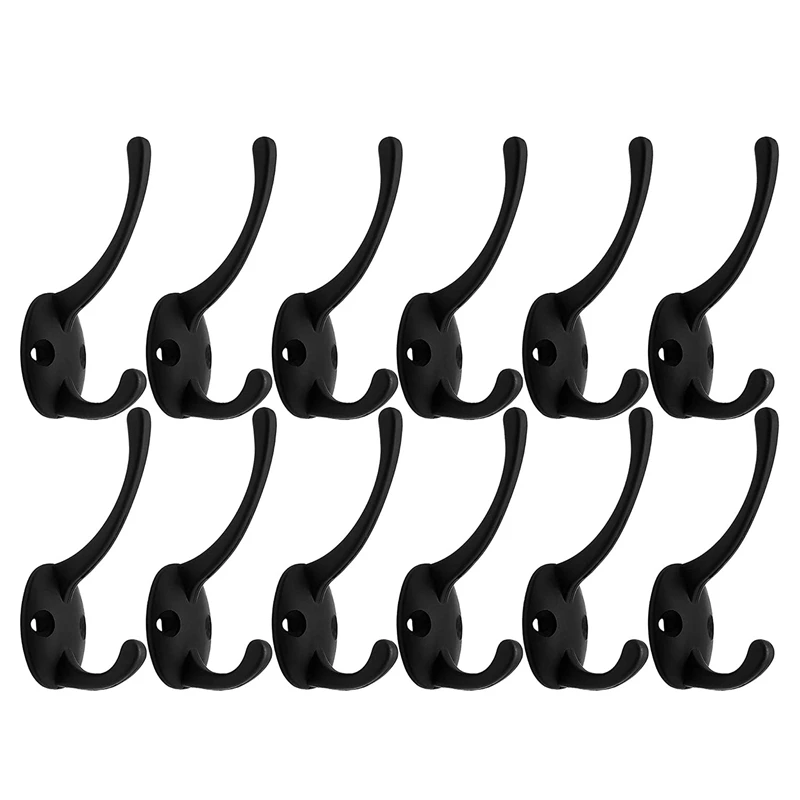 Акция! 12 шт. в упаковке, черные Крючки для пальто, настенные двойные крючки в стиле ретро, черные Крючки для пальто, шарфа, сумки, полотенец, ключей, C