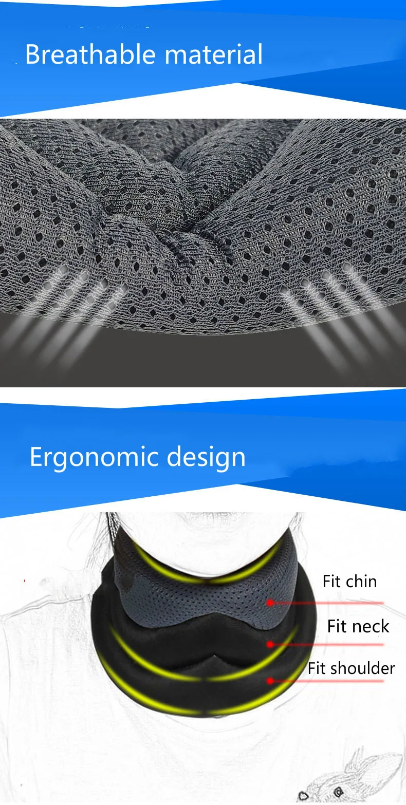 【 Эластичный материал 】 шейный воротник изготовлен из вспененного материала и тонкой работы, легкий и облегчает боль в шее. Он быстро впитывает пот и сохраняет шею сухой и без запаха из дышащих материалов. Удобство для кожи обеспечивает комфорт при непрерывном использовании, что помогает сохранить шею прохладной.