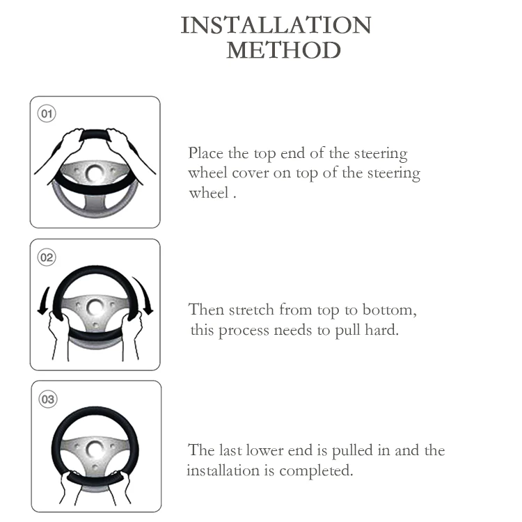 1. Поместите верхний конец крышки рулевого колеса сверху на руль 2. Затем растянуть сверху до кнопки, этот процесс нужно тянуть hard3. Последний нижний конец вытягивается и установка завершена