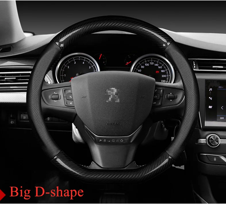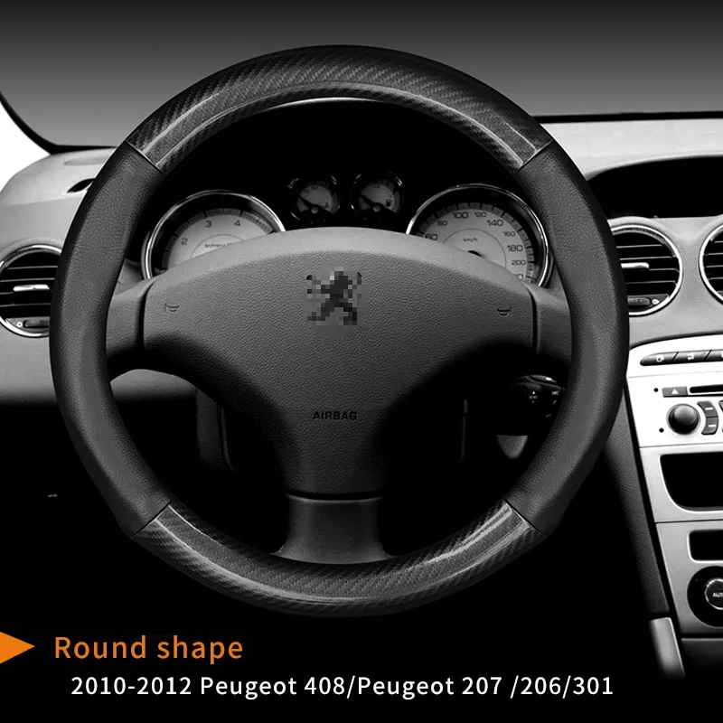 Углеродное волокно + кожаный чехол рулевого колеса автомобиля для Peugeot 308 2012-2019 207 208 206 3008 508 307 408 407 2008 2012-2020 4008 5008 508L На верхней части крышки рулевого колеса есть логотип бренда 3D из цинкового сплава и надпись 3D лазерного автомобиля внизу. С учетом патента на товарный знак изображение продукта не будет отображать соответствующий логотип автомобиля. Если вам нужно просмотреть изображение реального продукта с логотипом, пожалуйста, свяжитесь с нами.