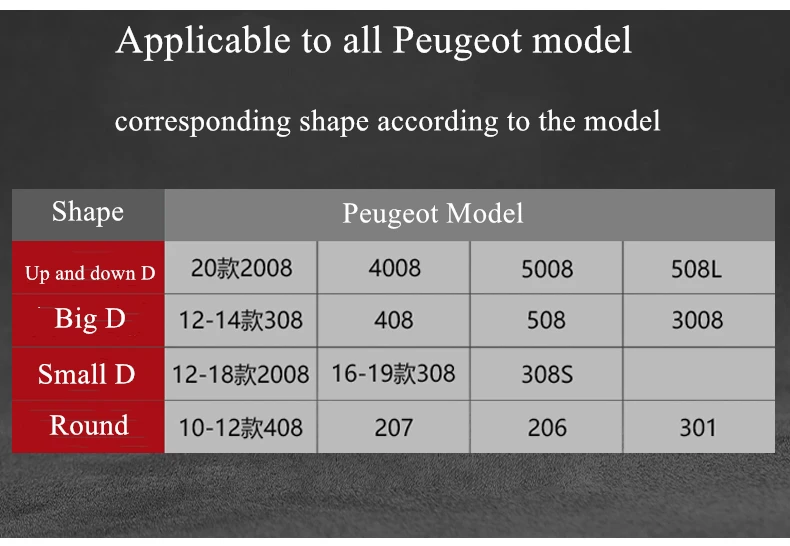 Подходит для всех моделей автомобилей Peugeot, когда вы делаете заказ, Выберите форму руля, тогда все в порядке, если вам нужен другой цвет, пожалуйста, отметьте нас! Спасибо