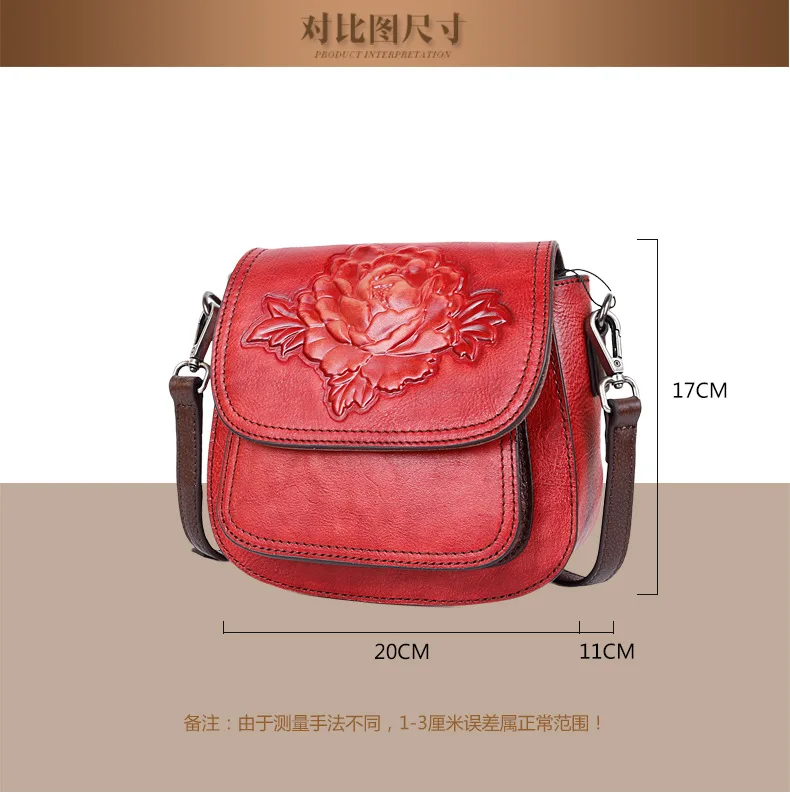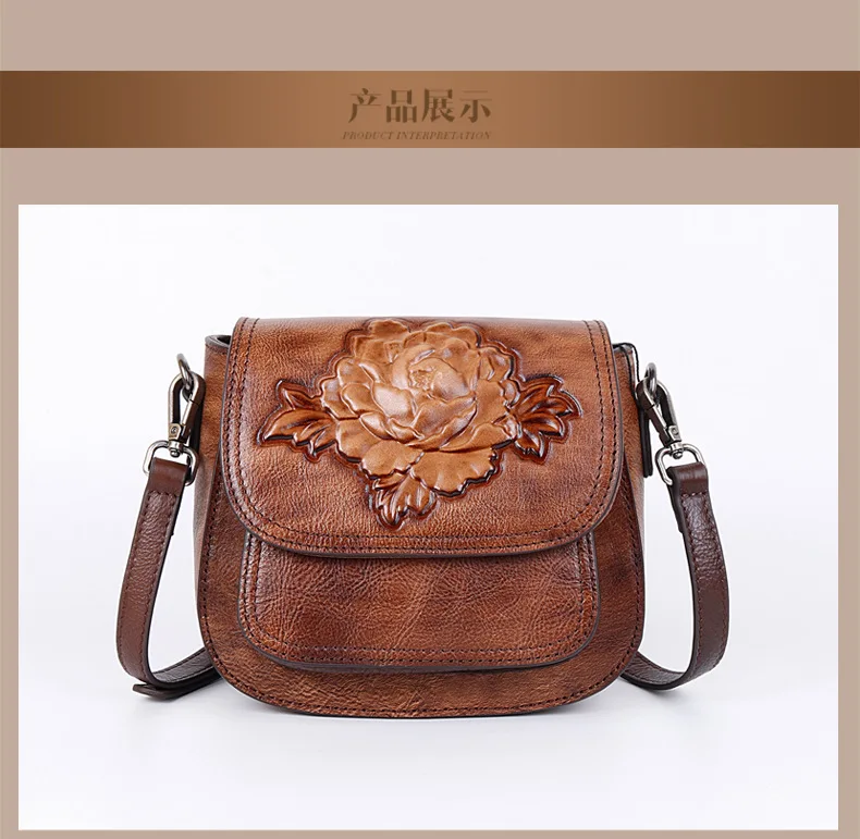 Новая трехмерная сумка из воловьей кожи с тиснением на голову, женская сумка на одно плечо с диагональным покрытием, ручная потирающая цветная модная сумка с пионами