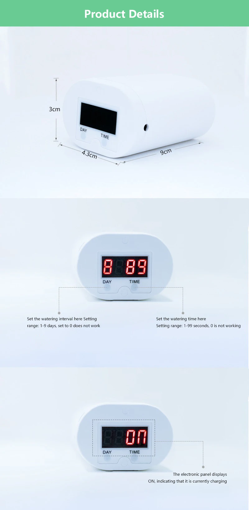 The design uses a 3.7V rechargeable lithium battery, which is safe and low in labor consumption. It can be used for at least two months on a single charge.