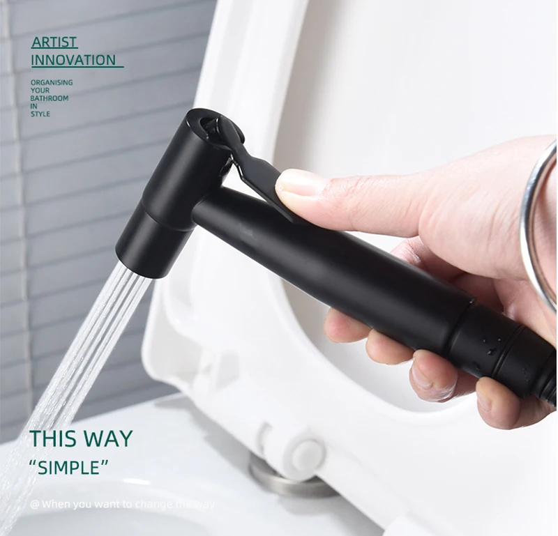 Набор ручных распылителей для унитаза и биде Dofaso черный из нержавеющей стали -