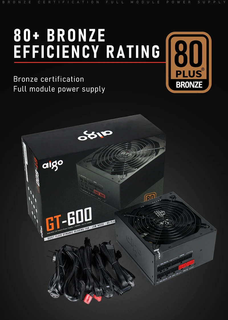 Aigo PC блок питания 600 Вт полностью модульный 80 плюс источник питания 100-240 в активный игровой блок питания ATX 12 В PFC 24Pin компьютерный блок питания