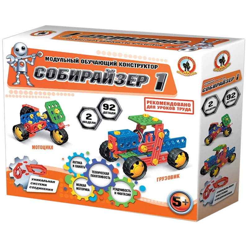 В наборе 92 детали и инструкция по сборке 2-х моделей: бульдозер и экскаватор.