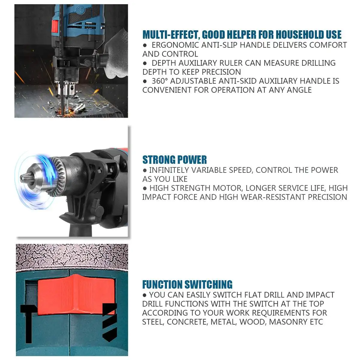 Когда вам нужно использовать функцию сверления, вам нужно только переключиться с одной кнопкой, не нужно заменять сверло, экономя время и усилия