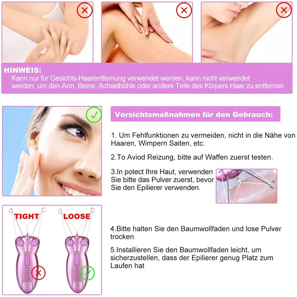 Используйте физическую рамэн для удаления волос на лице, безопасно и быстро удаляйте Волосы на лице, вдали от раздражения и аллергии.