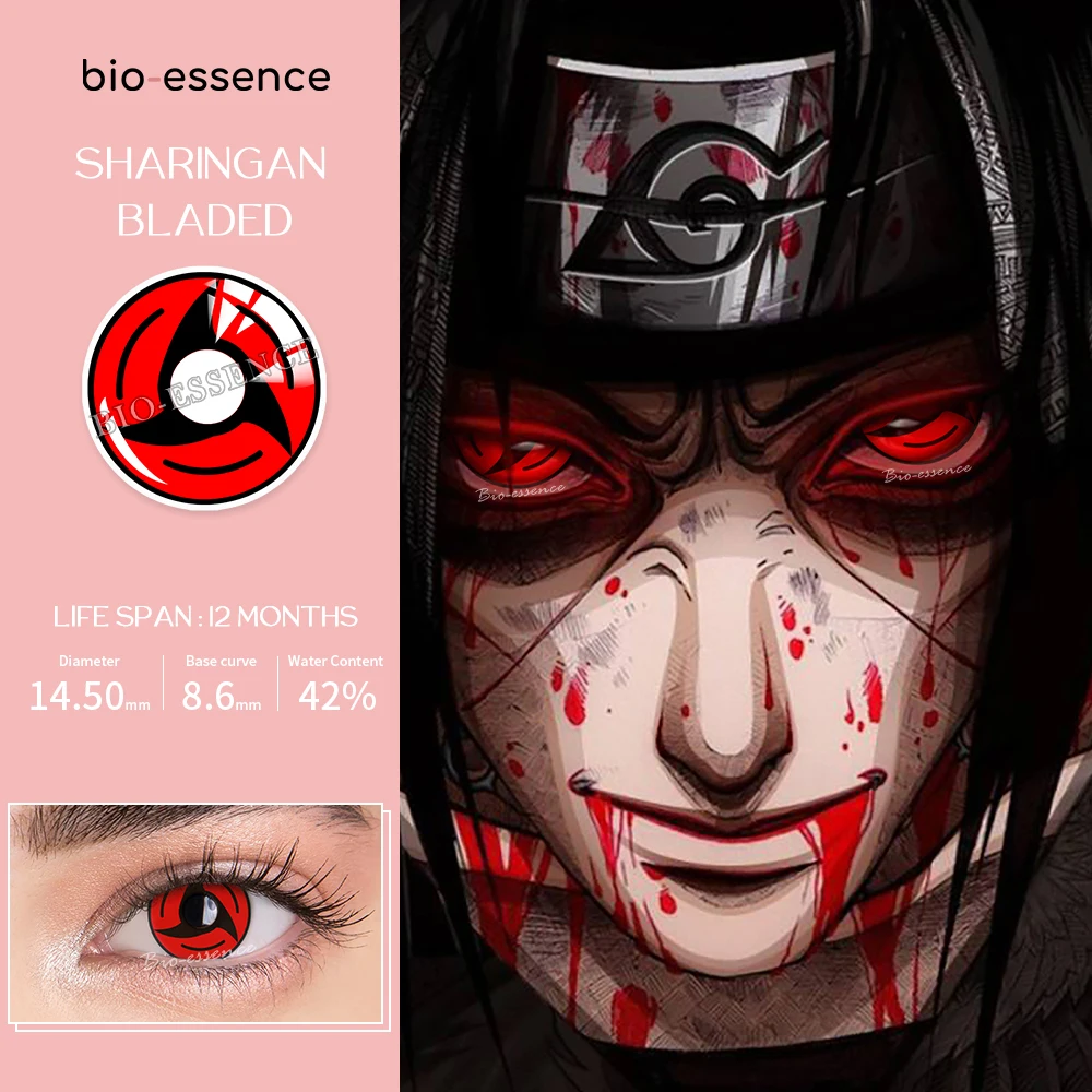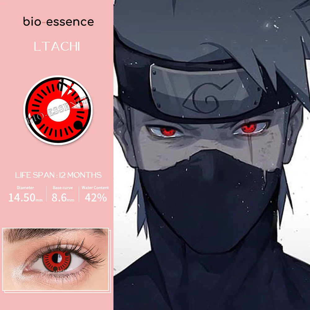 Bio-essence 1 пара цветных контактных линз для косплея Для Глаз Аксессуары для аниме Sharingan Contact Sasuke Kakashi Uchiha линзы