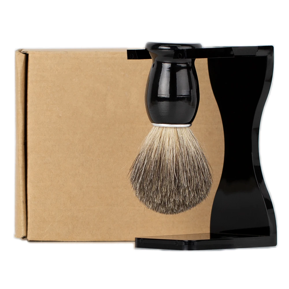Барсук щетка для бритья деревянная ручка и черный акриловый держатель для бритья