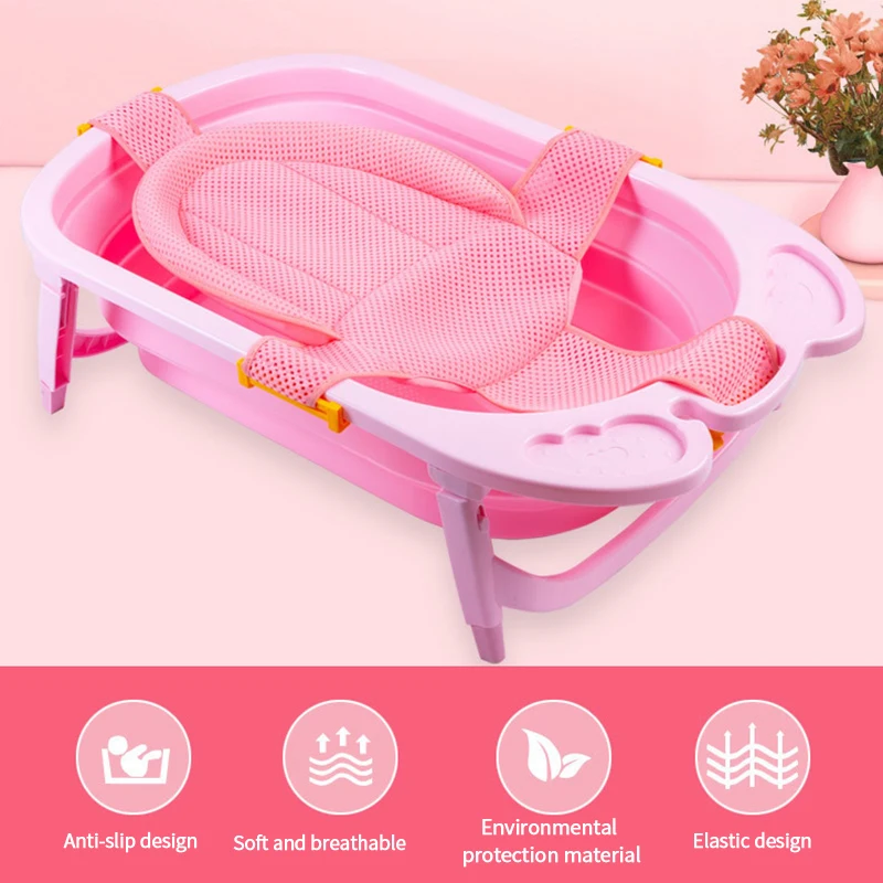 Эта сетка для ванны регулируется, она имеет Т-образную пряжку, вы можете регулировать длину сетки для ванны для размещения различных размеров ванны, это гуманизированный дизайн для разных возрастов детей.