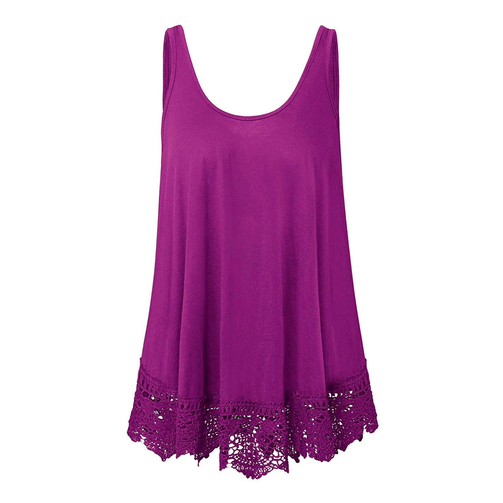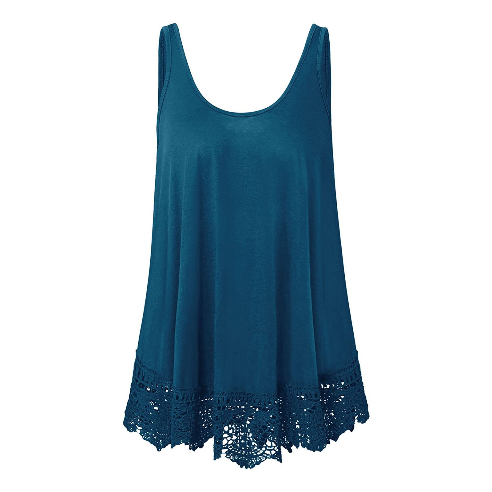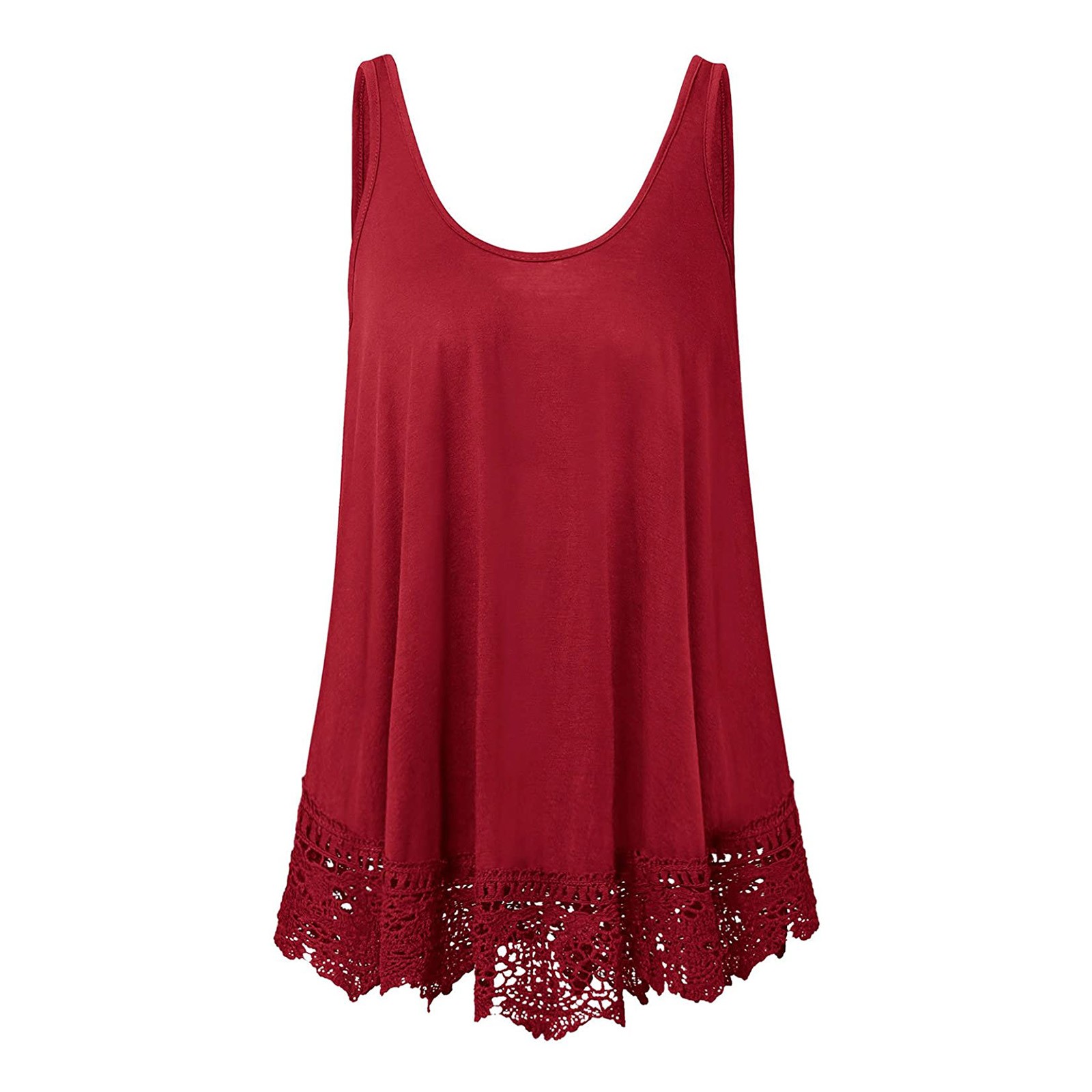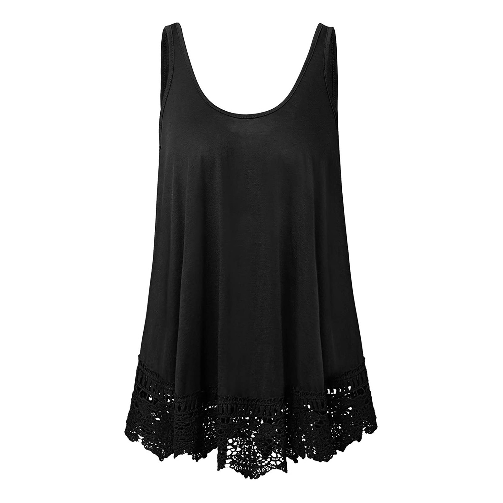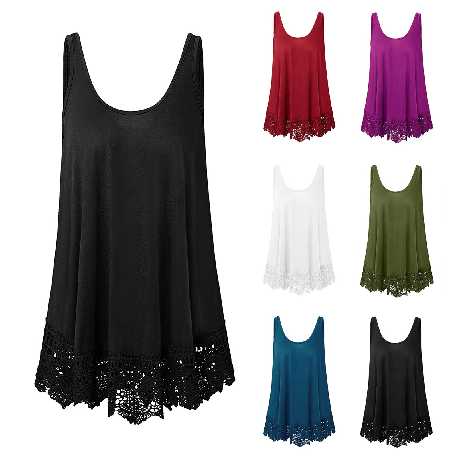 Женская Повседневная Свободная футболка без рукавов с круглым вырезом и кружевом большого размера плюс
