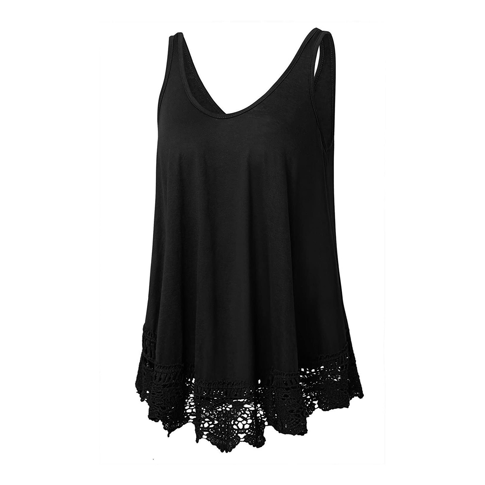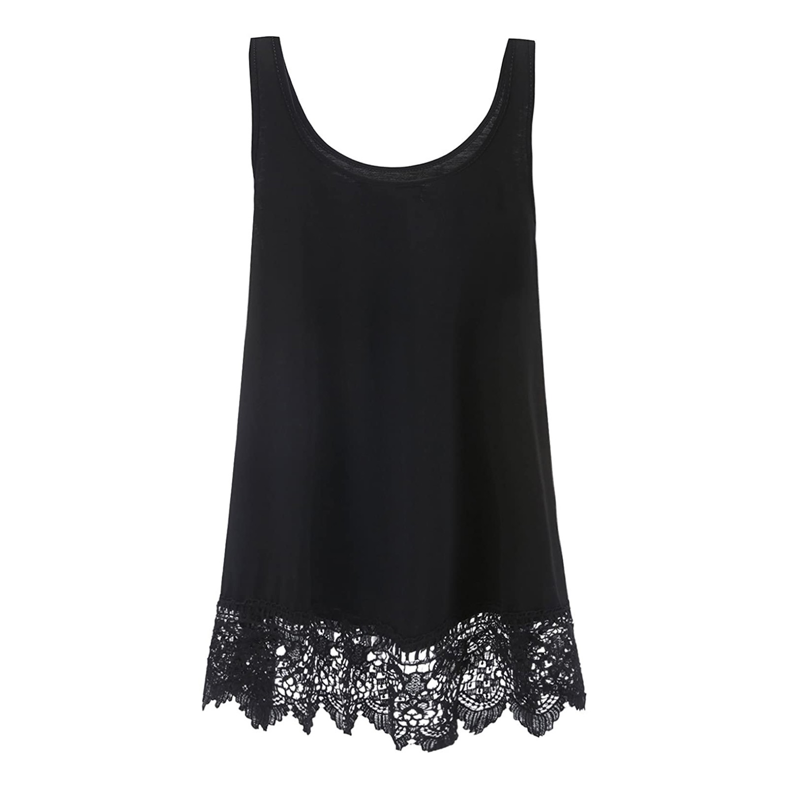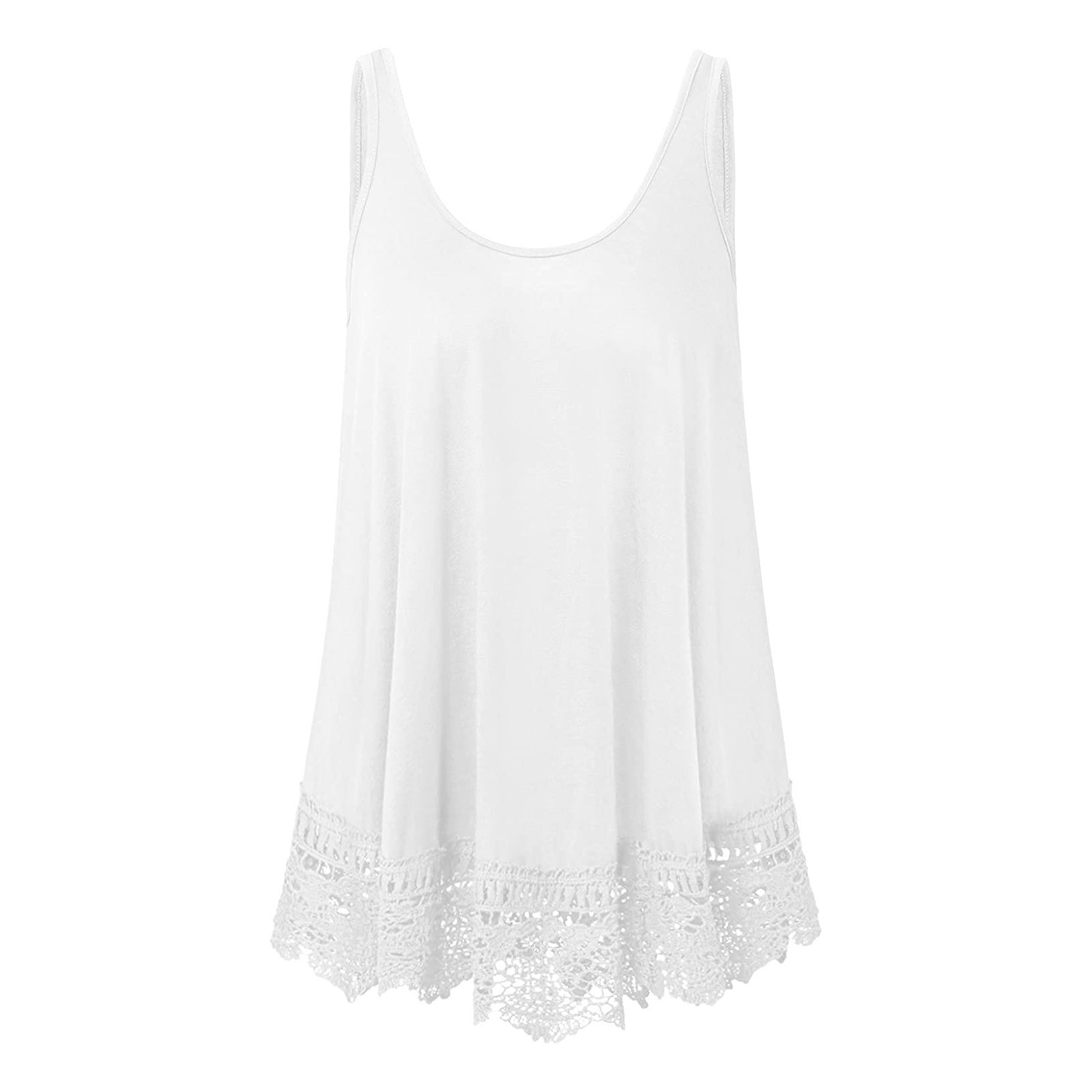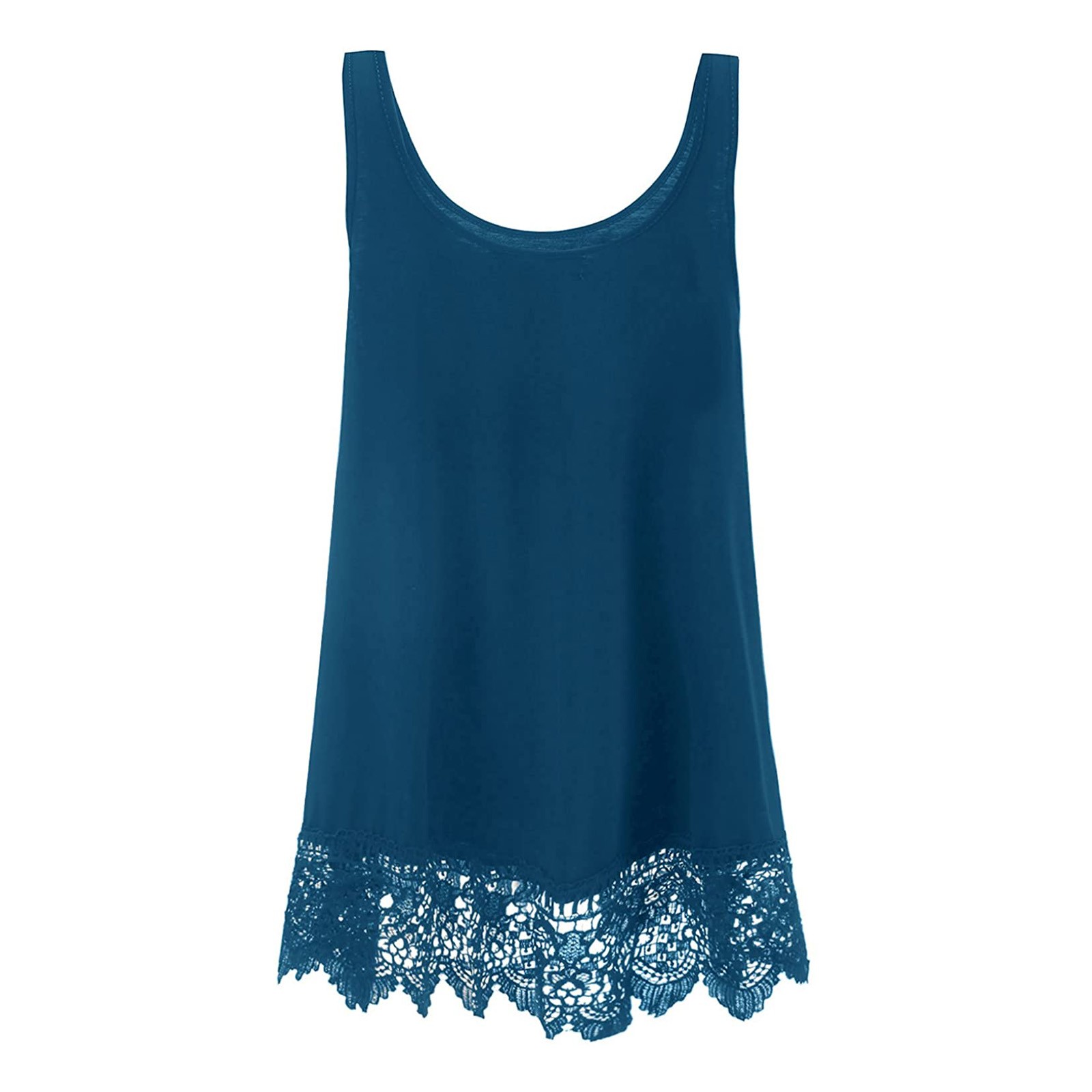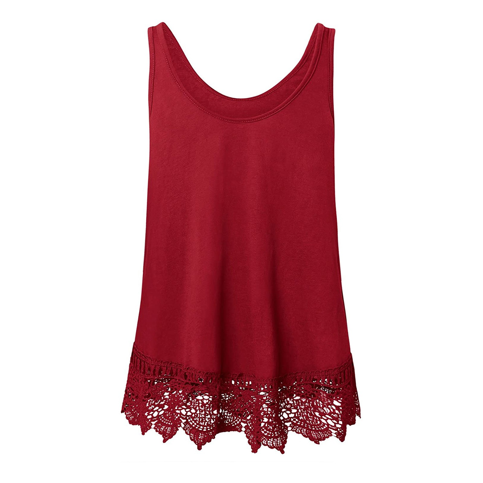 Женская Повседневная Свободная футболка без рукавов с круглым вырезом и кружевом большого размера плюс