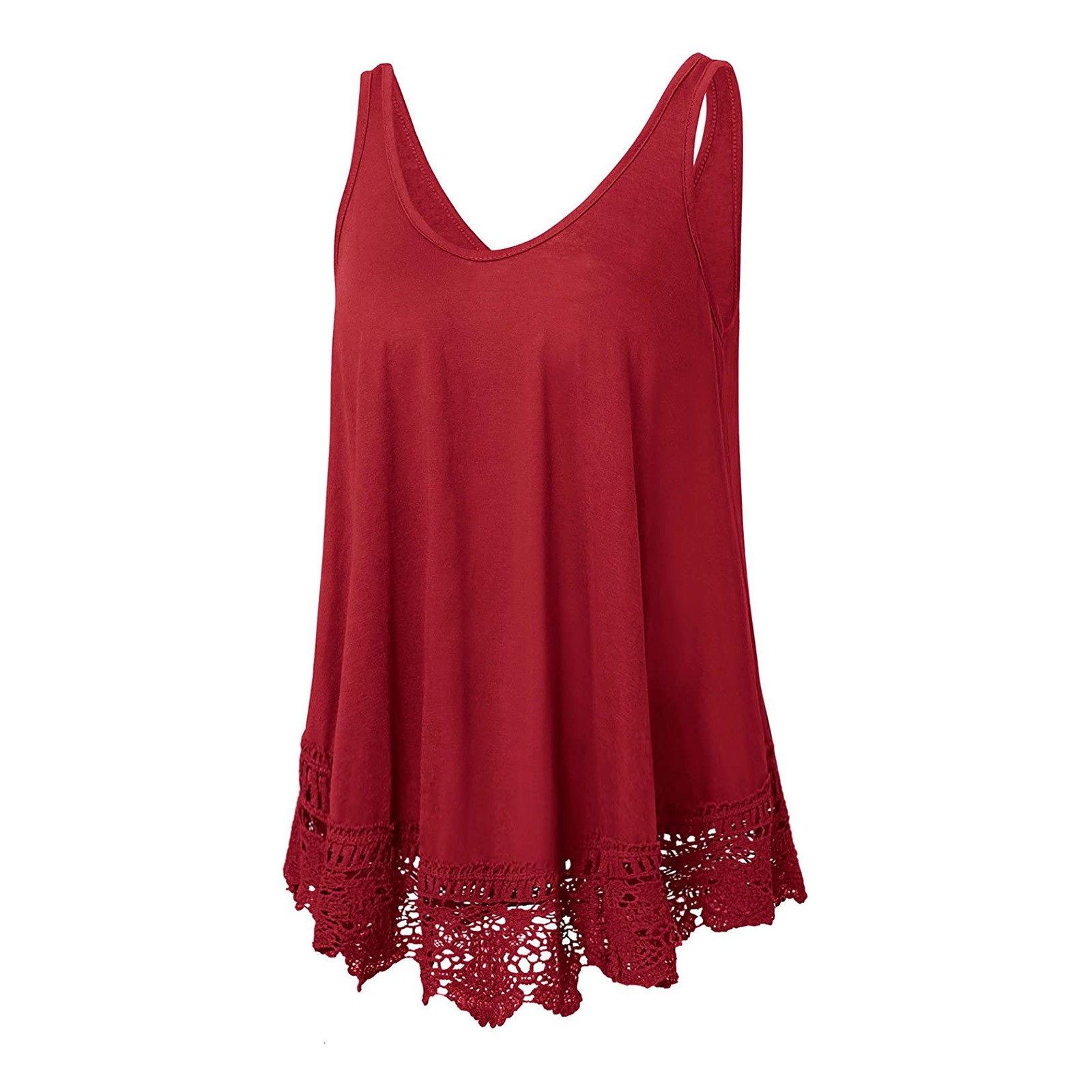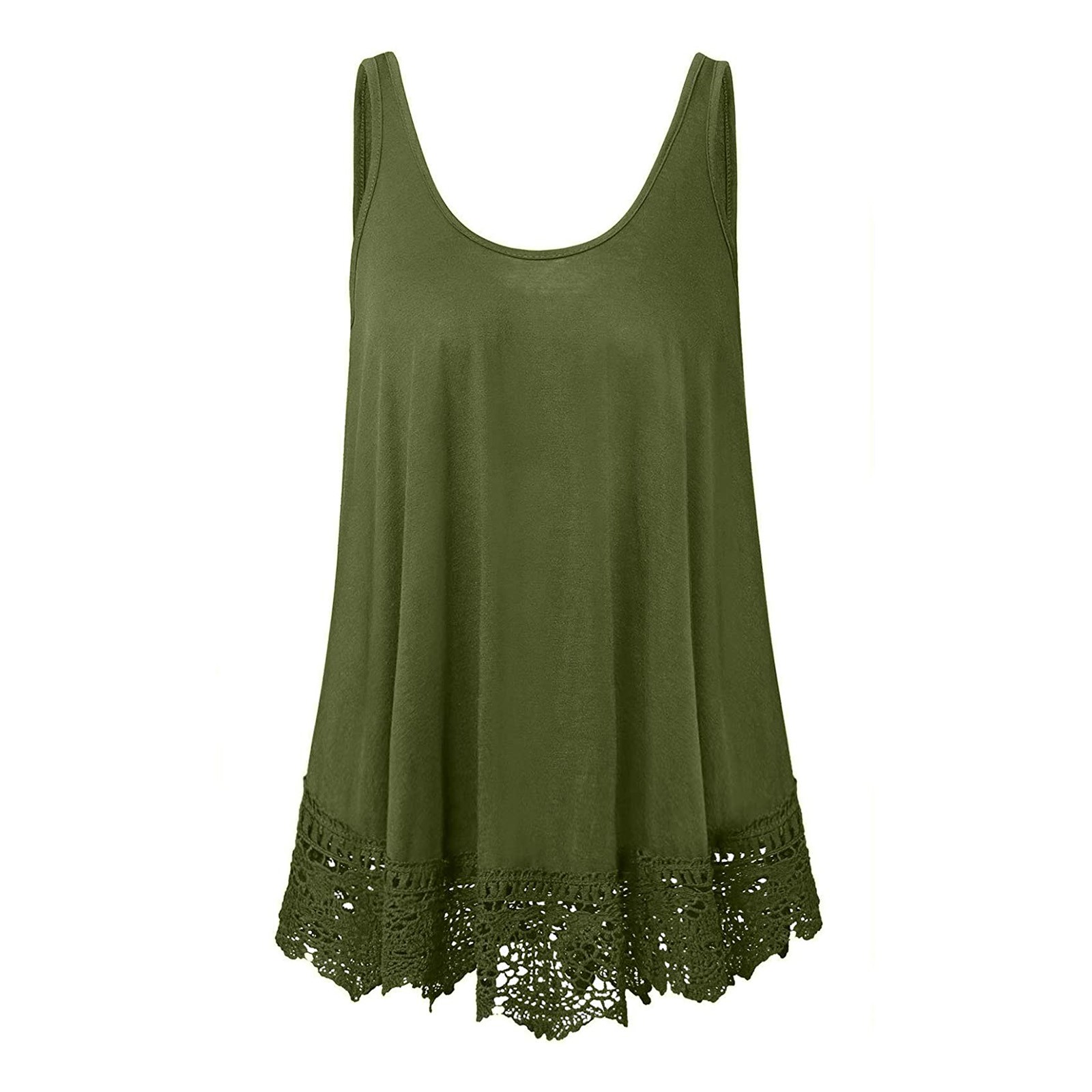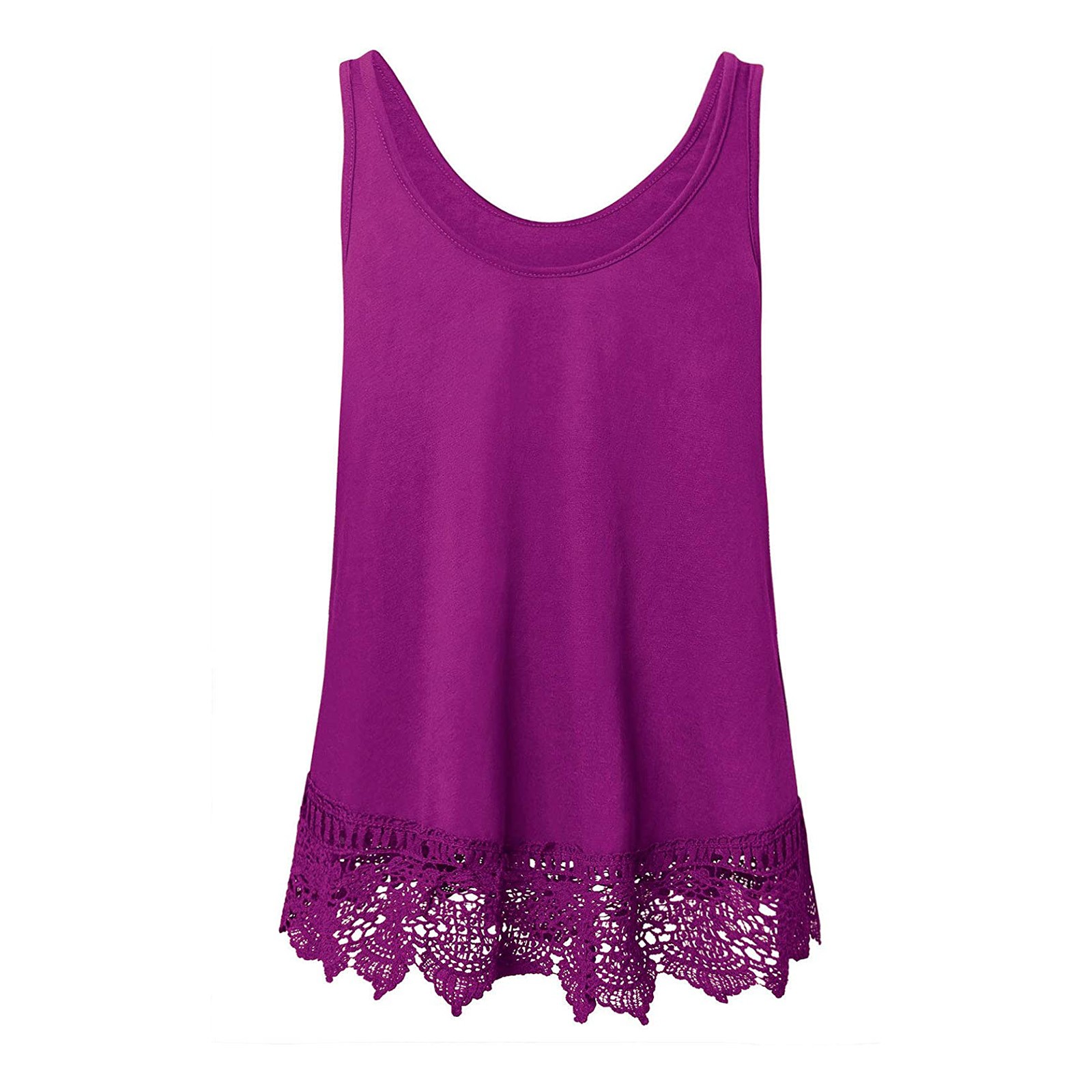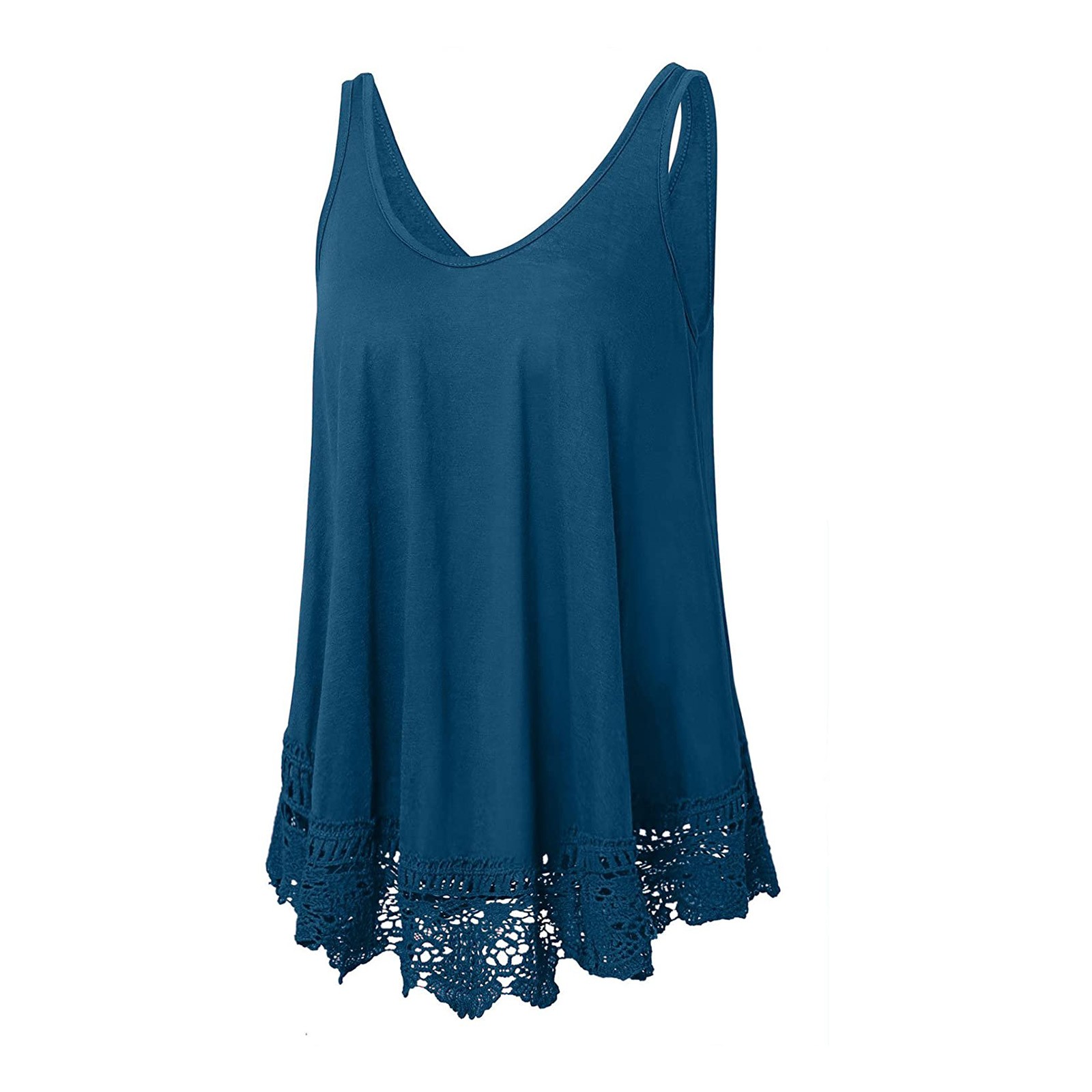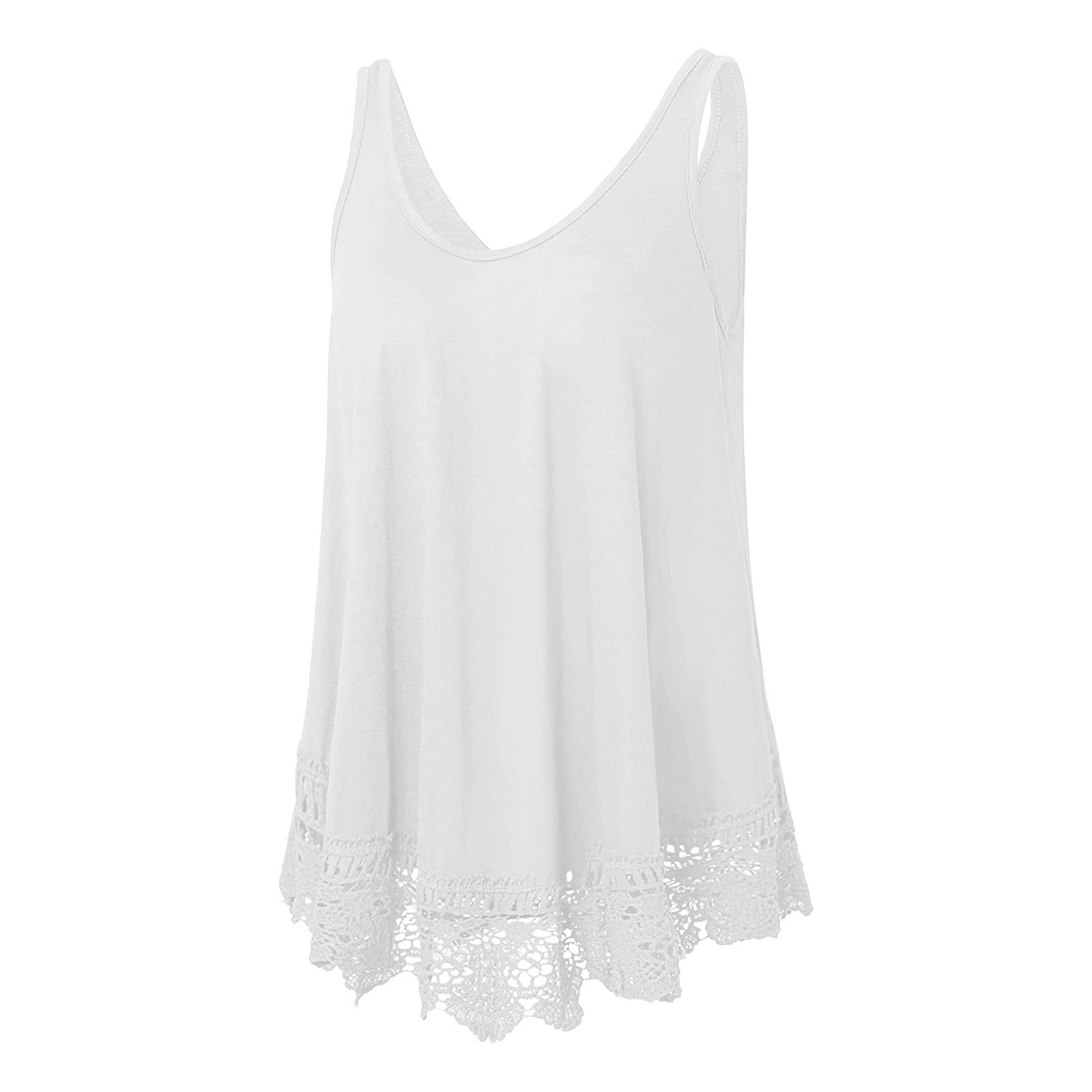 Женская Повседневная Свободная футболка без рукавов с круглым вырезом и кружевом большого размера плюс