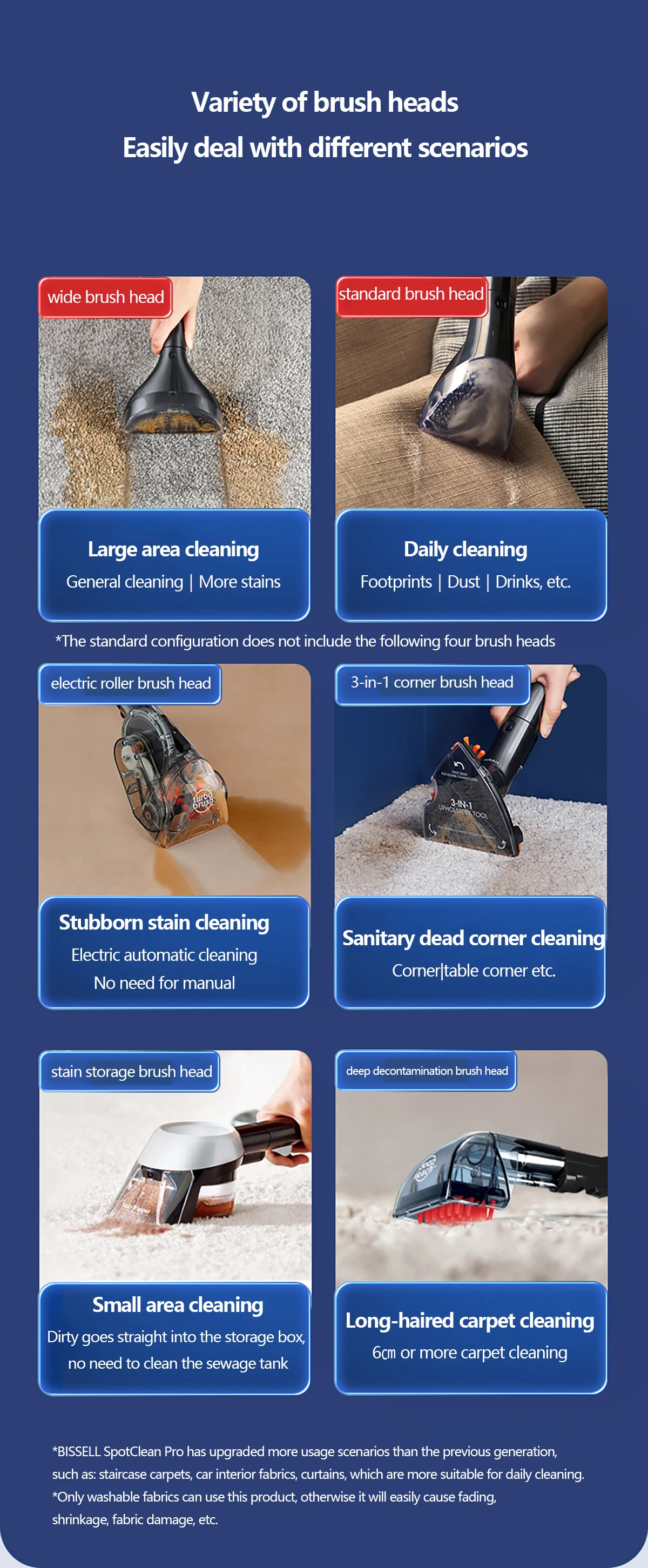 Точно Зафиксируйте грязные мелкие молекулы, спрятанные глубоко в ткани, нейлоновая круглая головка щетки делает грязь легко отделена от ткани, и эффект быстрый и полный, не повреждая ткань. Эффект виден