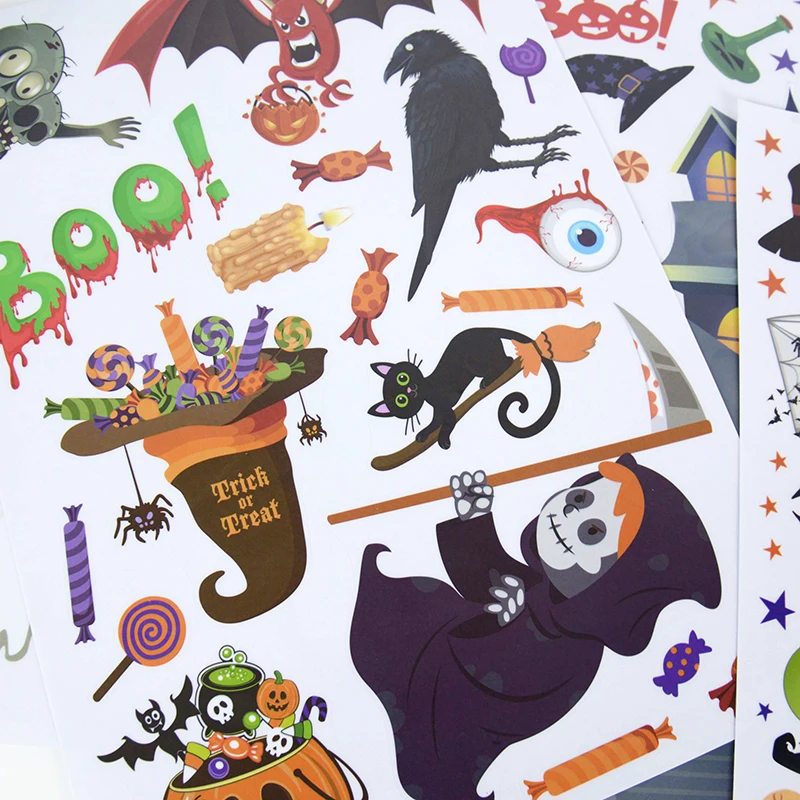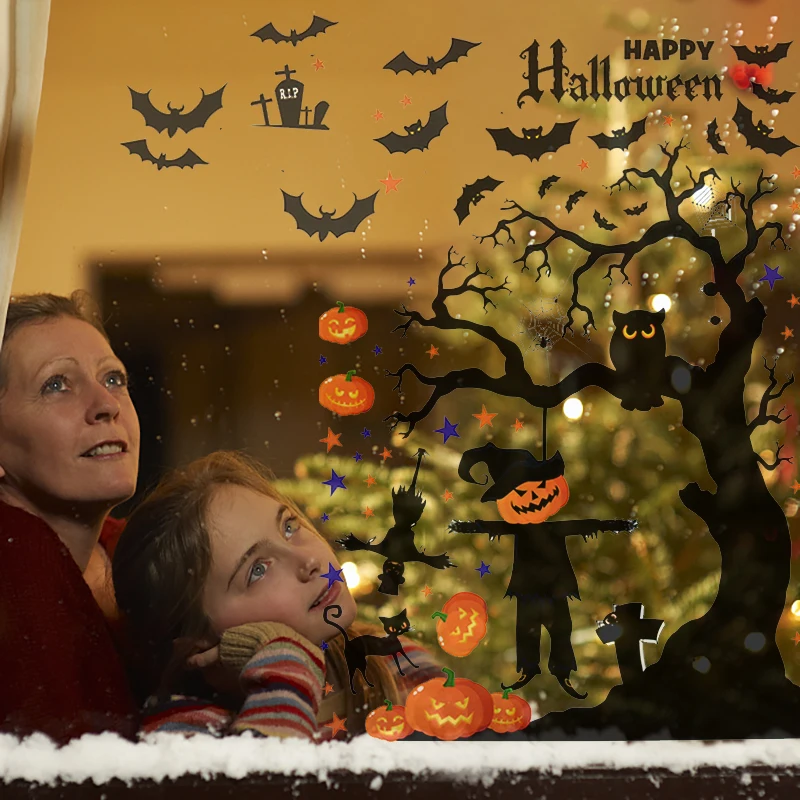 Хэллоуин украшения мультфильм ПВХ стикер на стену тыква летучая мышь призрак зеркальное стекло окно стикер Детская комната настенные наклейки домашний декор