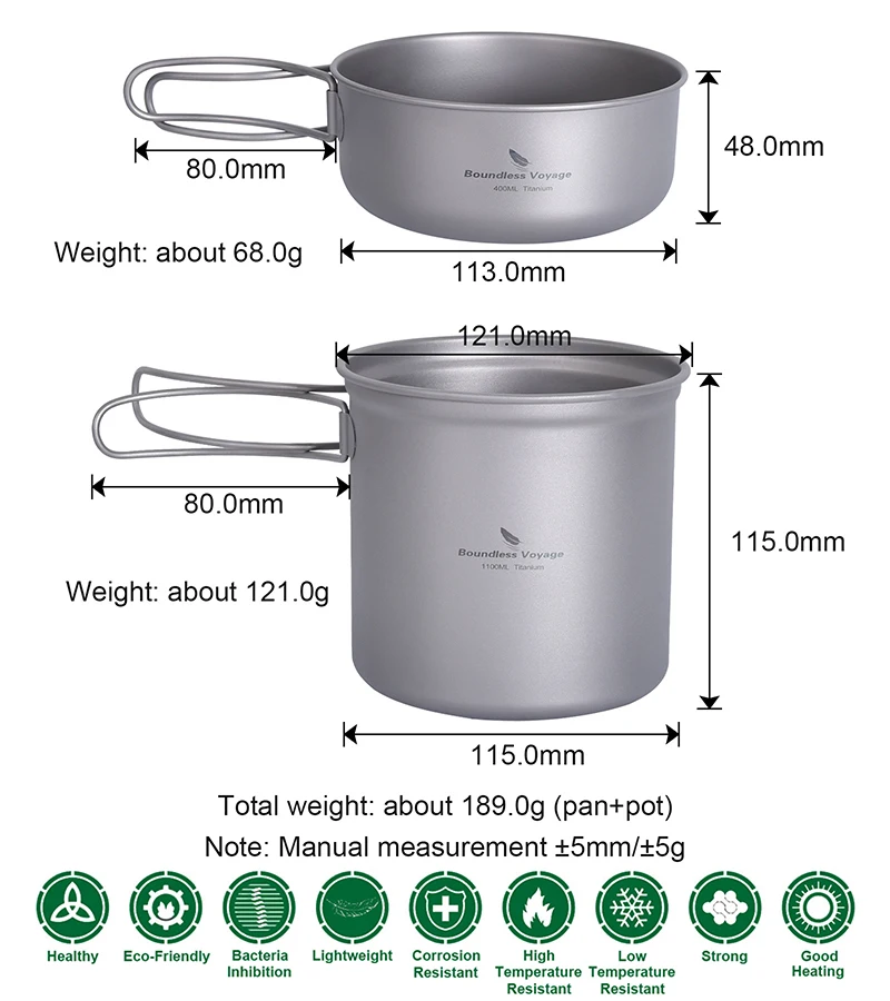 Φ113x(H)48mm (pan),68g;Φ115x(H)115mm (pot), 121g;