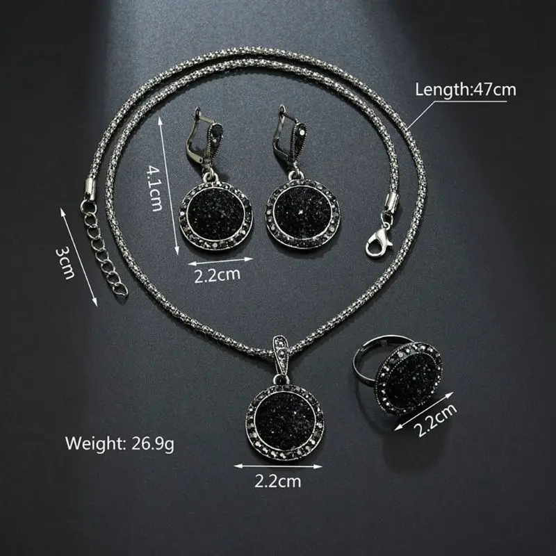 1 комплект, черные круглые стразы, ожерелье, серьги, кольцо, ювелирный набор, богемный черный камень, свадебные модные украшения для женщин