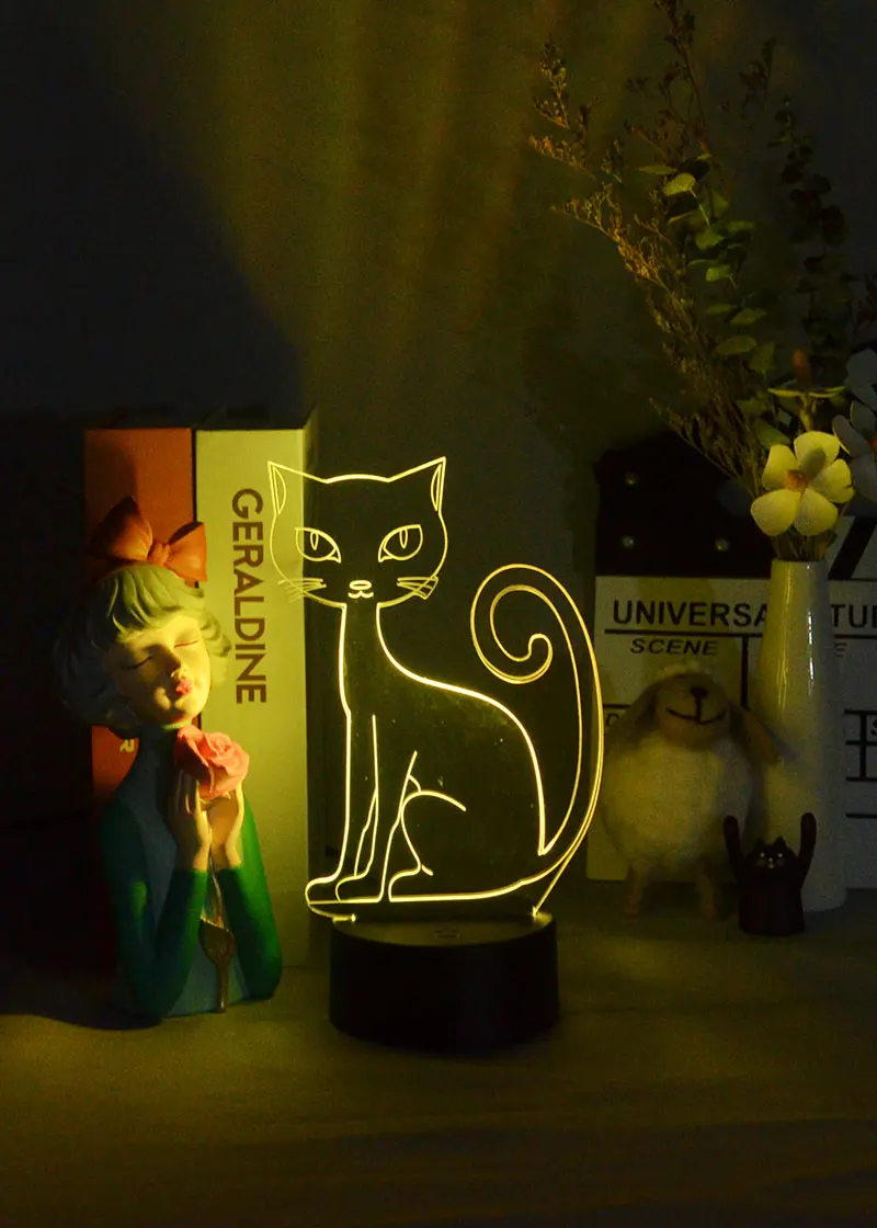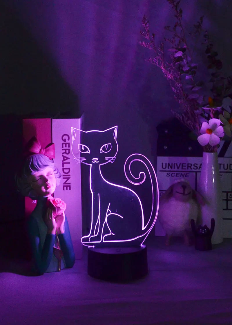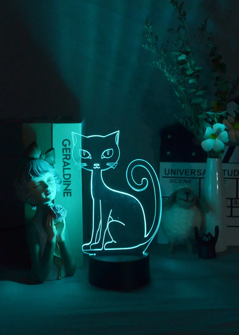 3D Детский Ночной светильник с милым котом, украшения для спальни, лампы, прикроватный столик, LED, котенок, Китти, художественный декор, кавайное украшение для комнаты