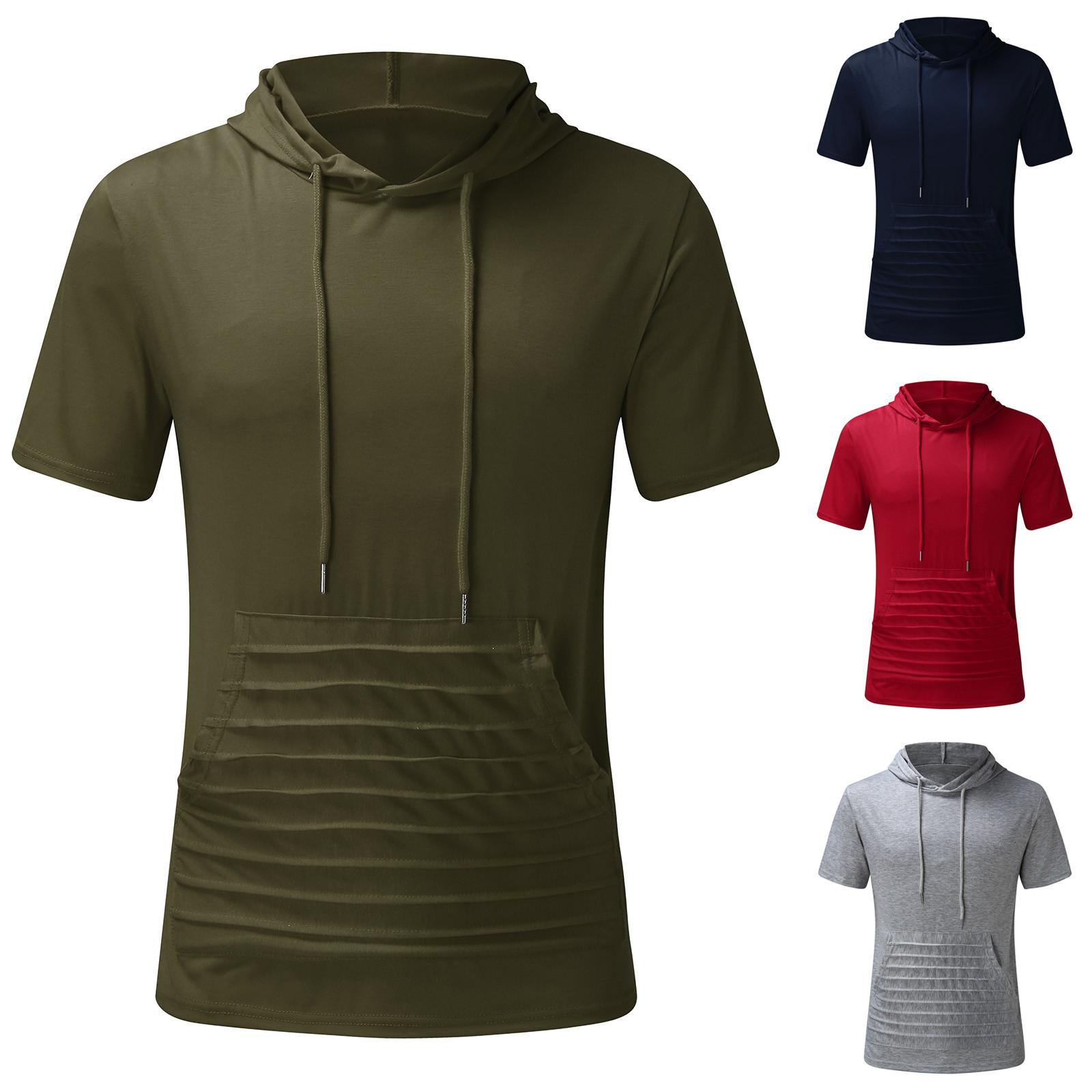 Мужская Летняя приталенная Повседневная футболка с капюшоном и карманами с коротким рукавом, топ, блузка