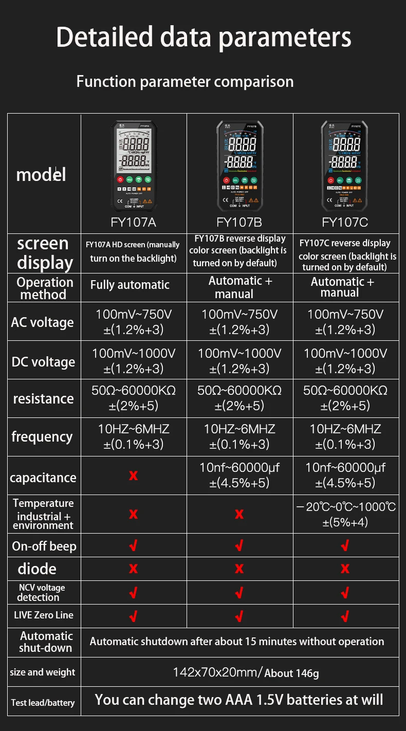 Разница между FY107 и FY107B Смарт мультиметр тестер