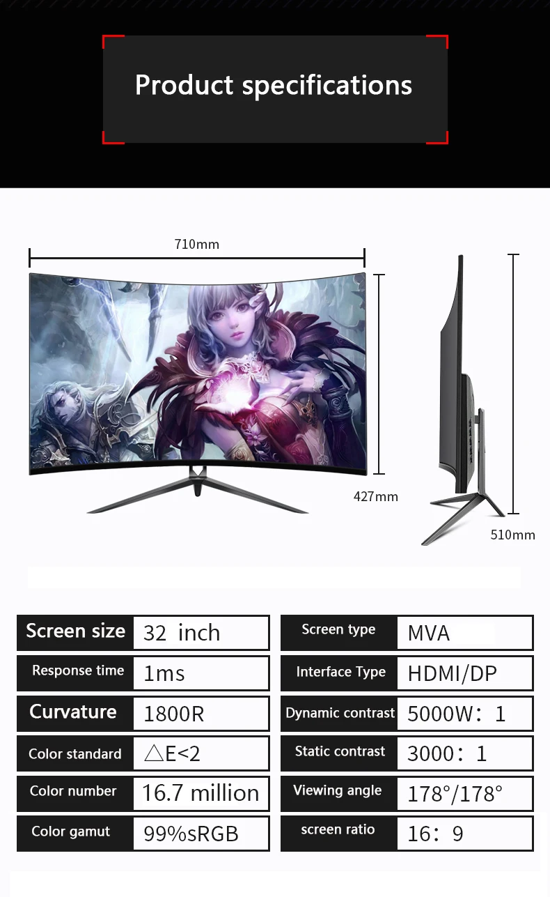 Бренд монитора SANV-это 32-дюймовый изогнутый игровой монитор высокого класса 144 Гц. Подходит для высокочастотных игр.