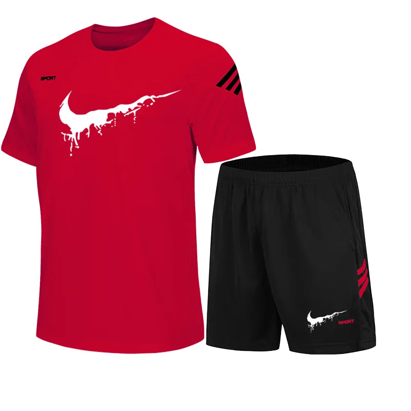 Мужская спортивная одежда с буквенным принтом, футболка с коротким рукавом и шорты, спортивная одежда, лето 2021, Мужская одежда для фитнеса, футболка с коротким рукавом и брюки, быстросохнущая M-5XL Extrol