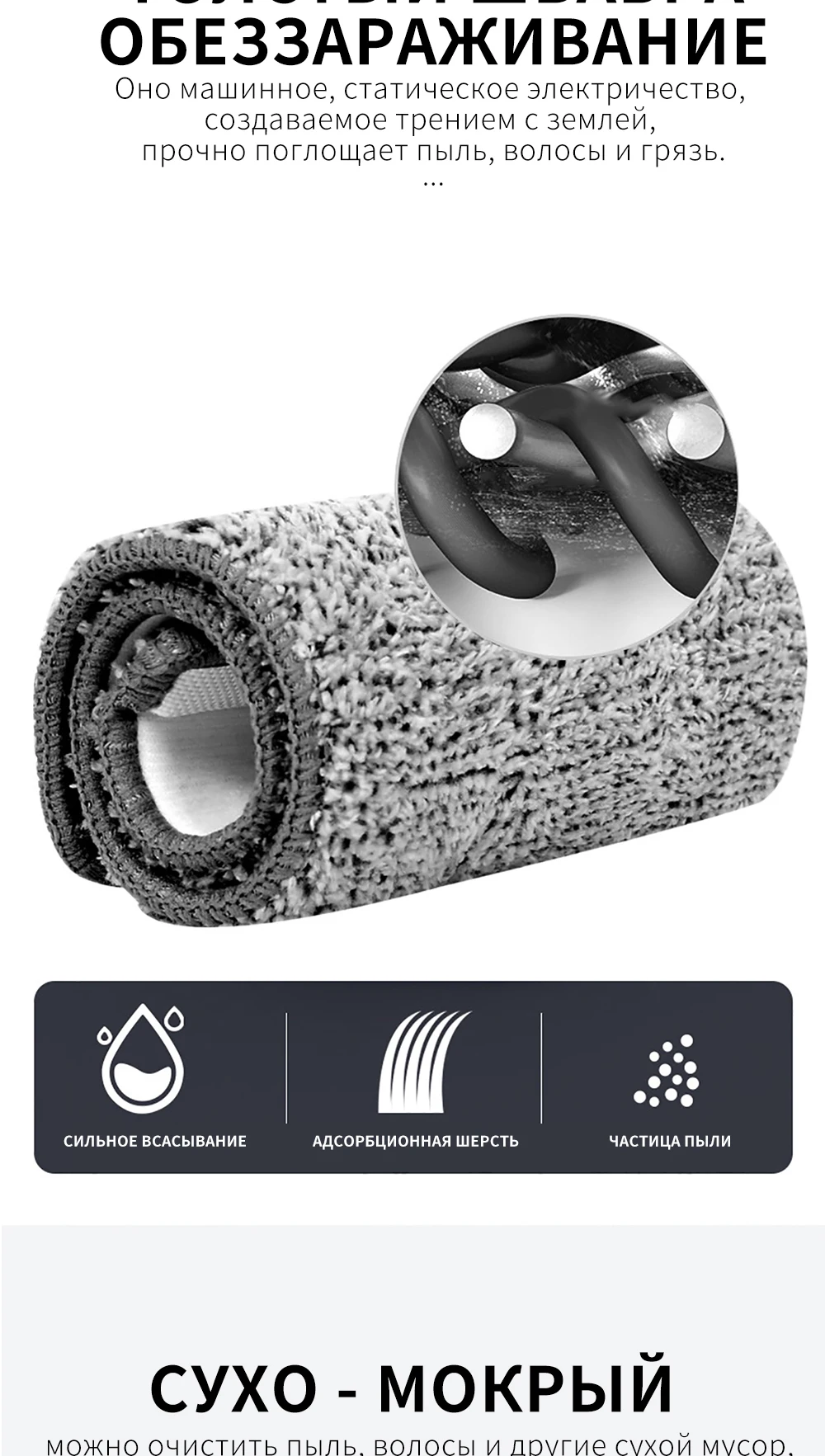 ● Швабра из микрофибры, сильное всасывание пятен, адсорбция пыли для волос