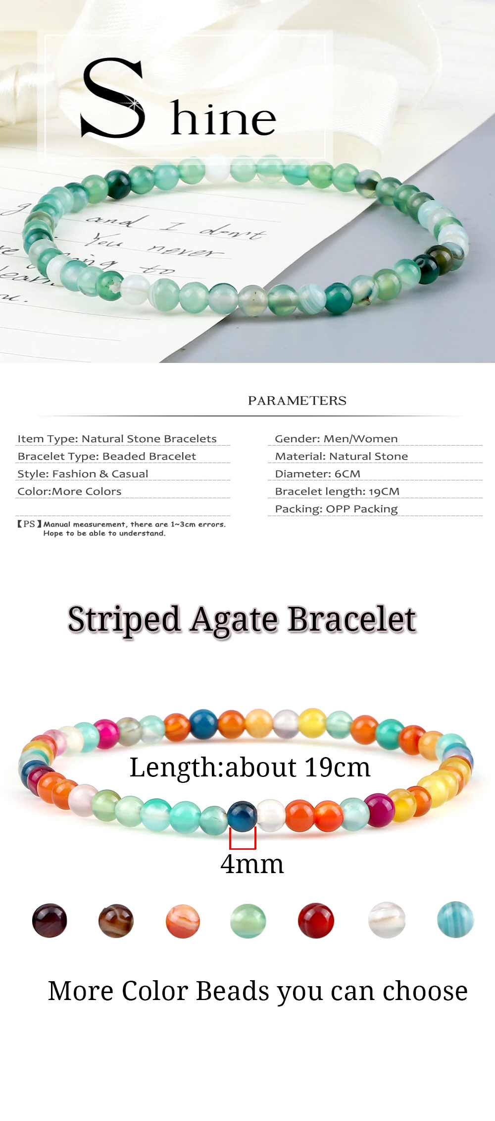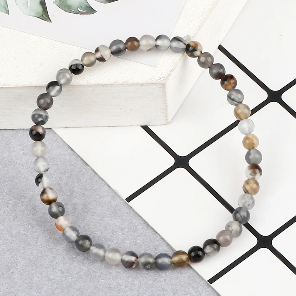 4 мм минималистичный полосатый браслет из агата, натуральный камень, эластичный браслет из веревочки, браслет из бисера для женщин, целебные браслеты, ювелирные изделия, подарок для мужчин, новинка