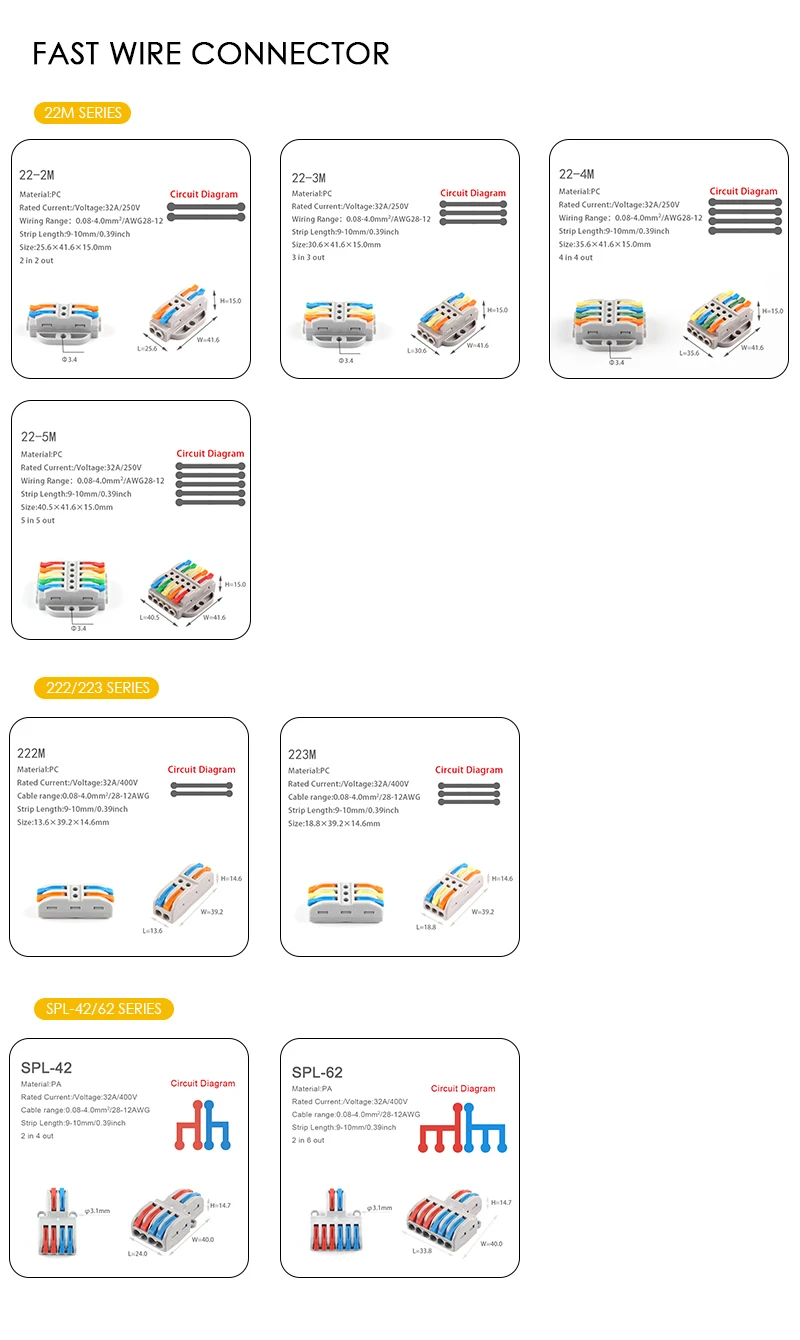 5 шт., соединители для быстрого провода, универсальный компактный проводник, пружинный сплиттер, соединитель проводки, вставной клеммный блок для электрического