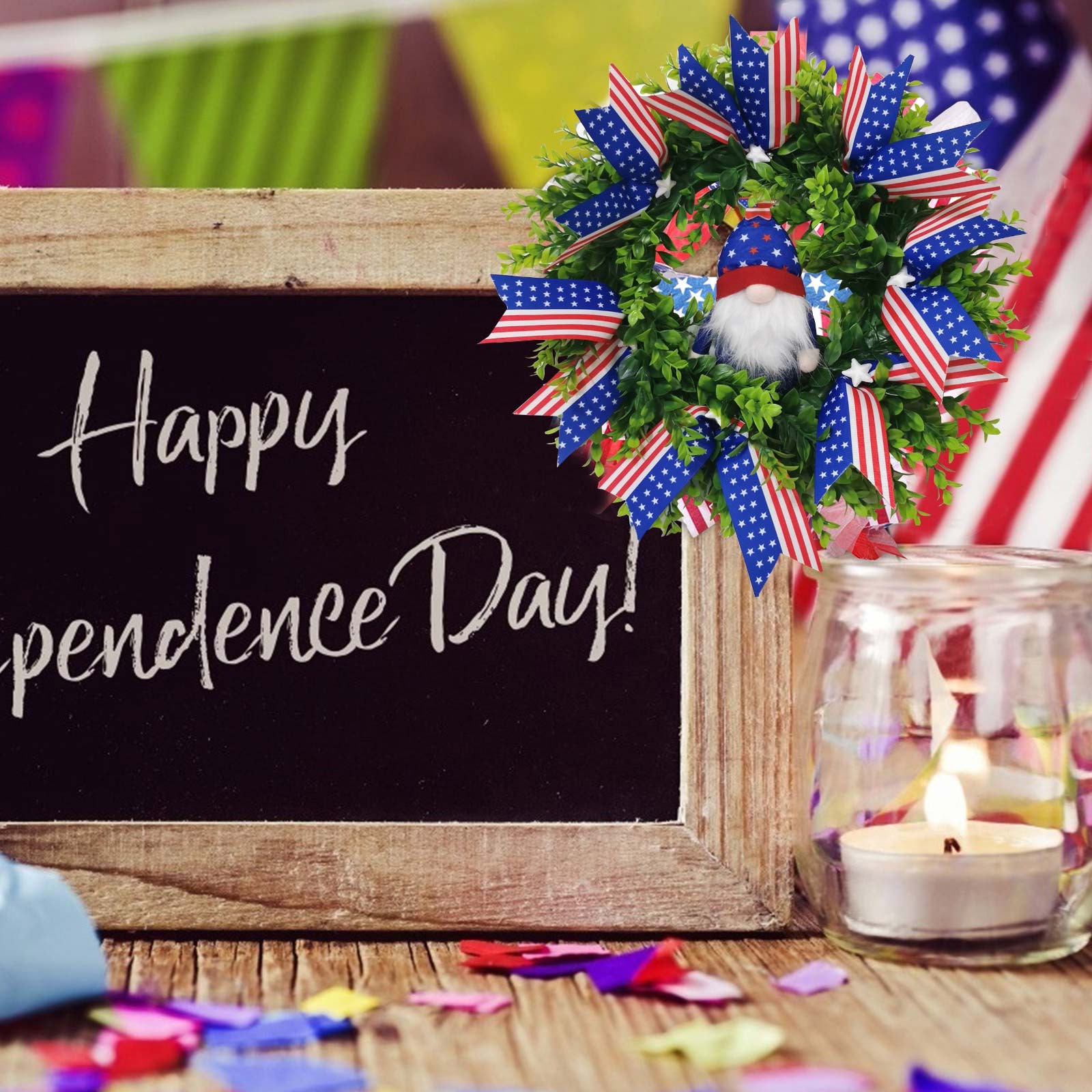 Гирлянда: патриотическая гирлянда с флагом, 4 июля, Повседневная гирлянда Повесьте ее над камином, положите на переднюю дверь или стену гостиной. Венок можно использовать в помещении или на открытом воздухе, что делает его универсальным декоративным аксессуаром.