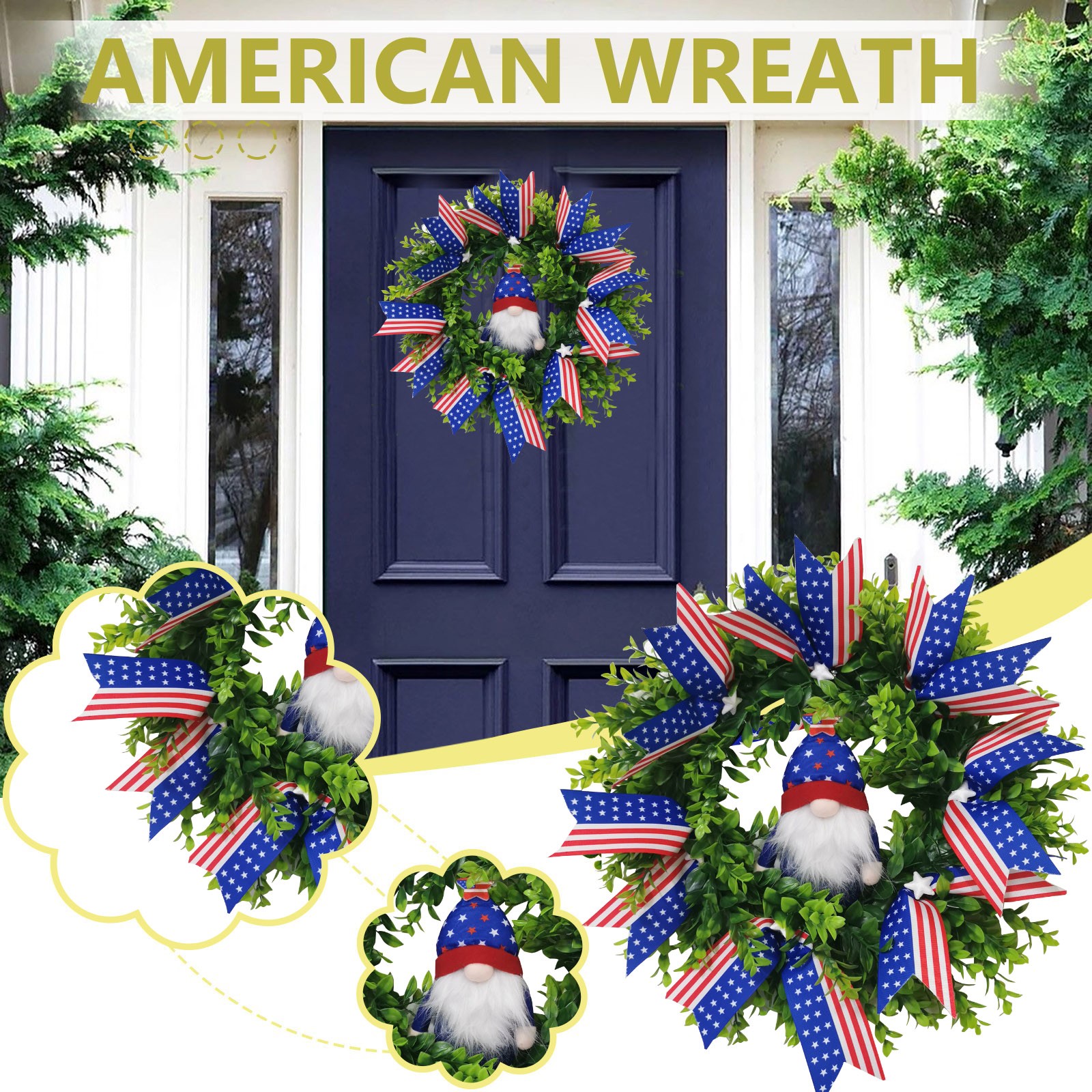 Прочный: вы можете использовать этот венок Дня независимости, чтобы добавить к вашему дому, особенно к входной двери. Кроме того, он использует высококачественные короткие ворсовые материалы, поэтому он очень прочный и надежный.