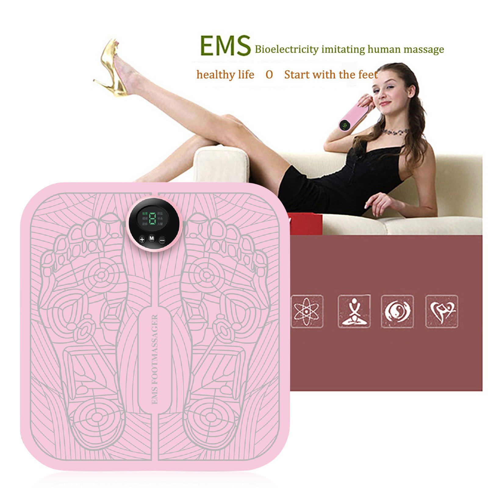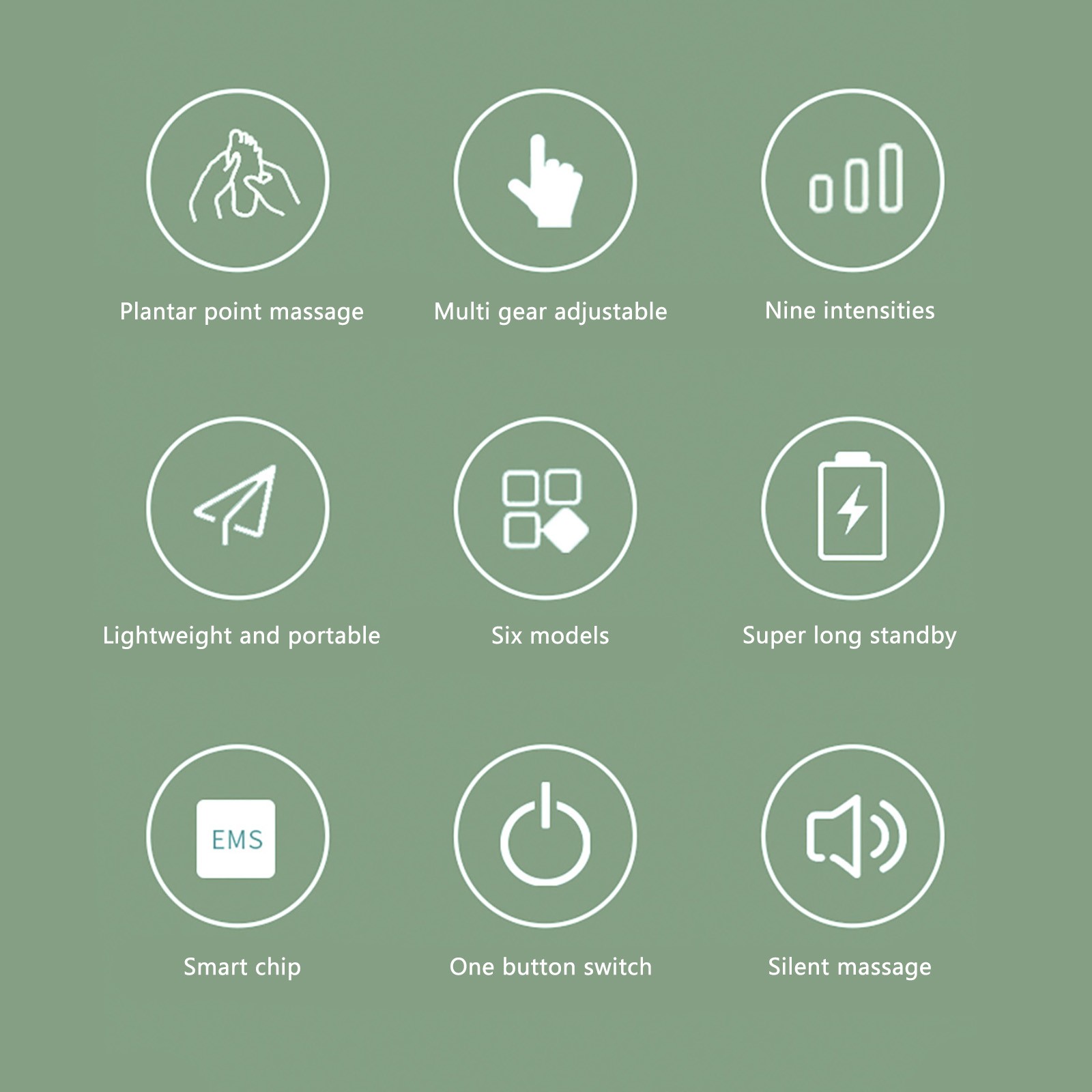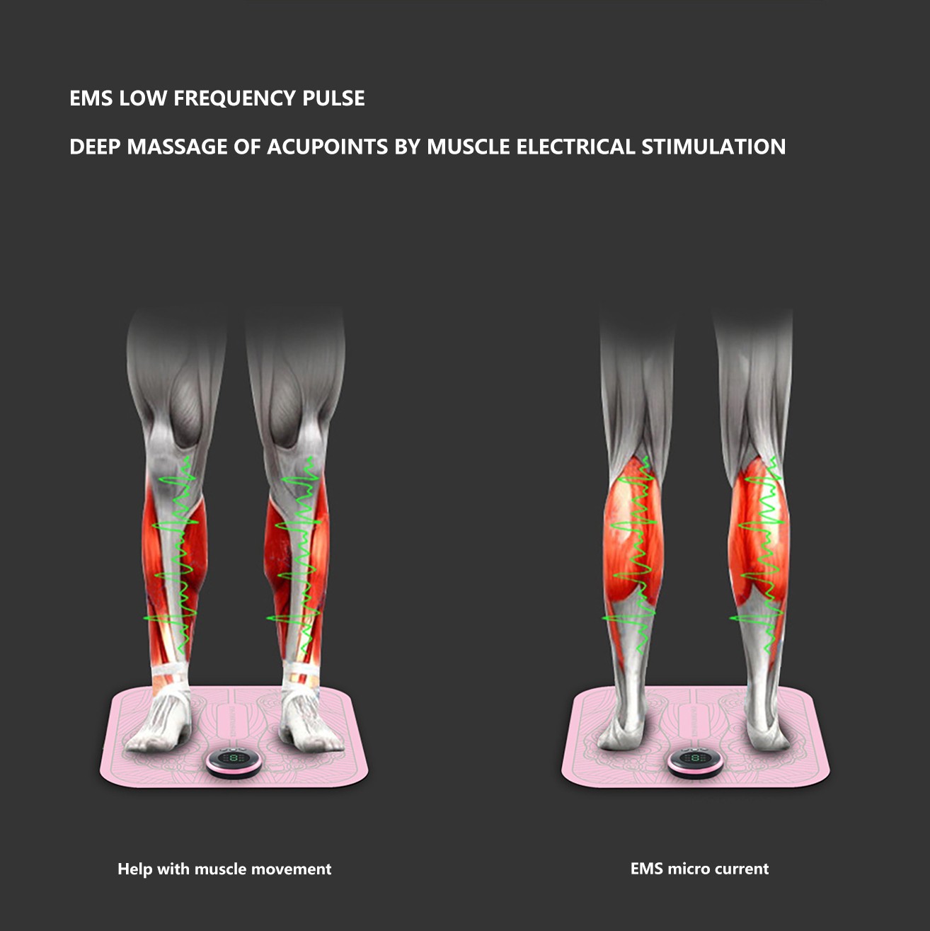 2, EMS foot massage: using EMS microcurrent technology, EMS pulses penetrate deep into the cortex, stimulate the nerve cord under the cortex, Relaxs muscles, pull muscles together and restore muscles. EMS low-frequency pulses can relieve tense muscle groups and relieve muscle aches and pains.