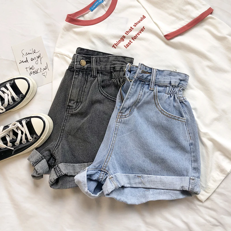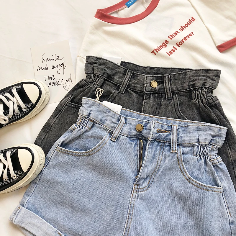 Amii минималистичные джинсовые короткие брюки осенние женские свободные с высокой