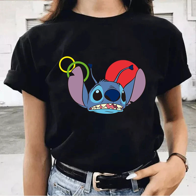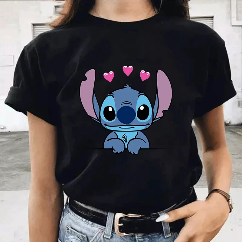 Женская футболка Kawaii Stitch, летняя футболка размера плюс с мультяшным графическим принтом, с коротким рукавом, с круглым вырезом, повседневные футболки, топы, базовые футболки, уличная одежда