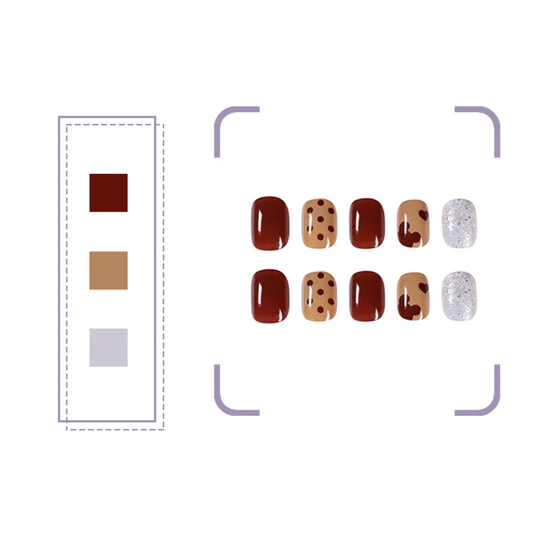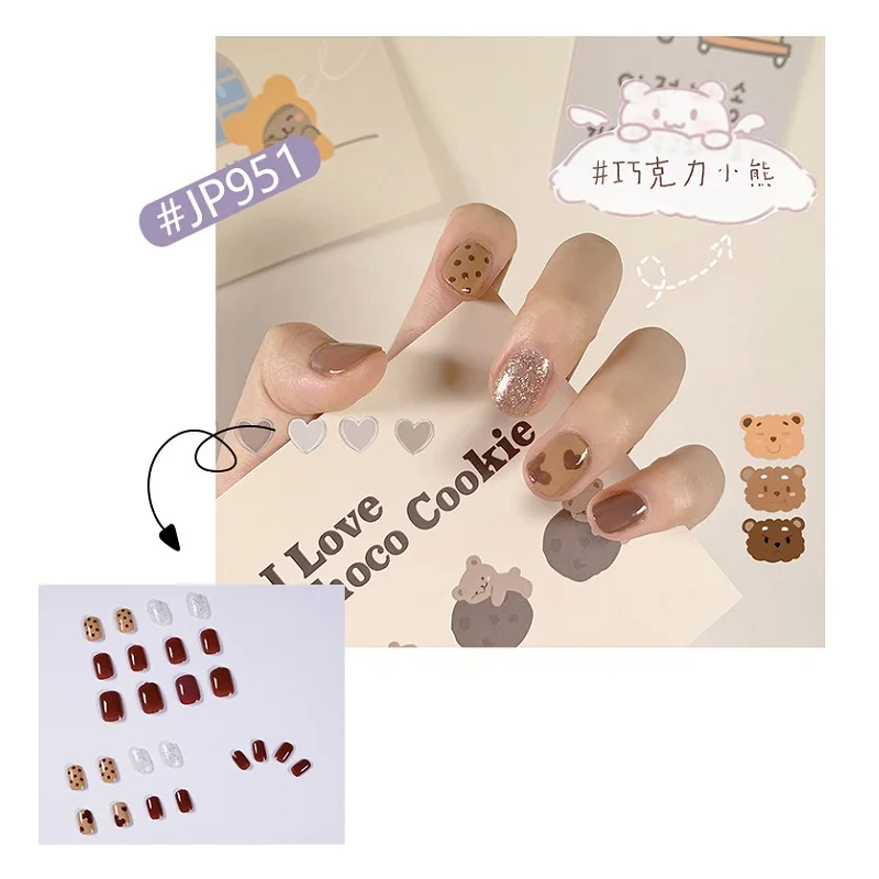 Милые блестящие накладные ногти с изображением коричневого медведя
