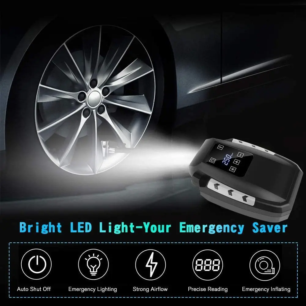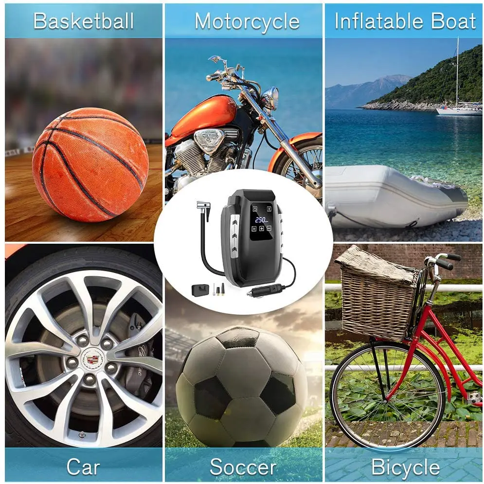 Автомобильныйкомпрессор для шин, портативный воздушный компрессор, работающего на постоянном токе 12 В в цифровой насос с манометром аварийное освещение для мотоциклов, велосипедов, шарики