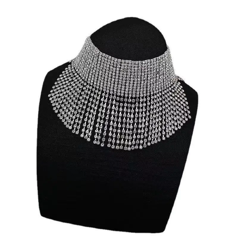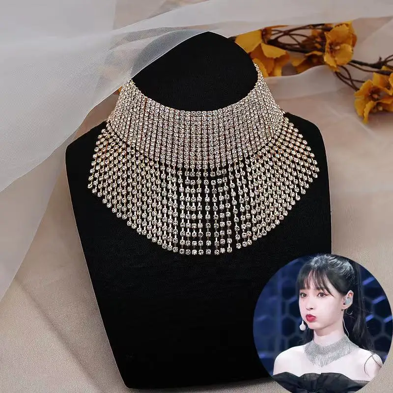 Новый модный стиль для женщин блеск все стразы кисточкой на длинной цепочке ужин роскошные свадебные темперамент ожерелье, ювелирное изделие, подарок