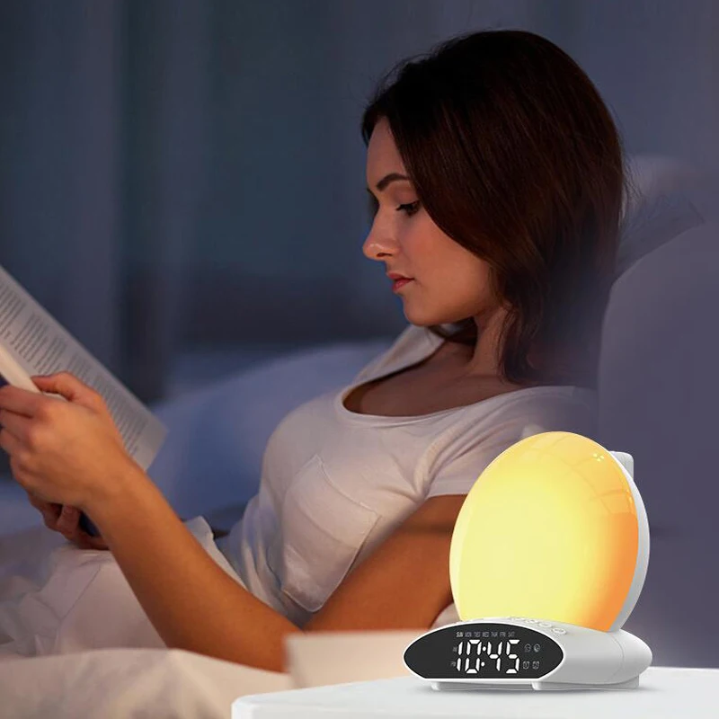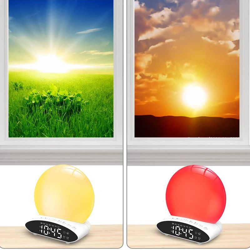 [Светильник пробуждения и будильник восхода солнца] имеет функцию моделирования восхода солнца, этот солнечный будильник будет светильник, И светильник постепенно увеличится с 10% яркости до 100% 30 минут до выключения будильника. В темную зиму аккуратно Просыпайтесь по индивидуальному заказу будильника sunrise, чтобы предотвратить удивление при пробуждении. Подходит для людей с тяжелым сном, детей и взрослых.